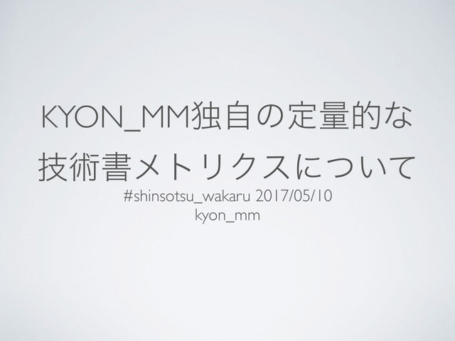 KYON_MMಠࣗͷఆྔతͳ ٕज़ॻϝτϦΫεʹ͍ͭͯ #shinsotsu_wakaru 2017/05/10 kyon_mm