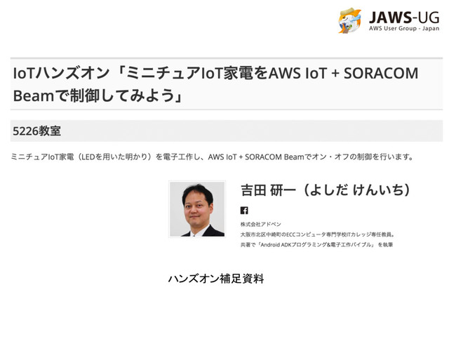 2016年10月22日(土)開催のJAWS-FESTA 東海道 2016にて開催したIoTハンズオン「ミニチュアIoT家電をAWS IoT + SORACOM Beamで制御してみよう」の補足資料です。