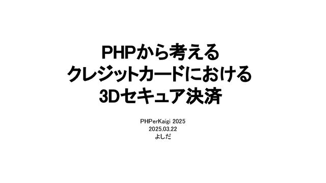 PHPerKaigi2025 ECサイトでのオンライン決済は当たり前の時代となっています。 オンライン決済の中でもクレジットカードでの決済を利用した方はかなり多いのではないでしょうか。 しかし今、クレジットカードの不正利用が問題となっており、経済産業省は2025年3月31日までに3Dセキュア2.0の導入を義務化しています。 3Dセキュア2.0とは何なのか、何を考慮すればよいのかをLaravelとStripeをサラッと使いながら軽く説明します。