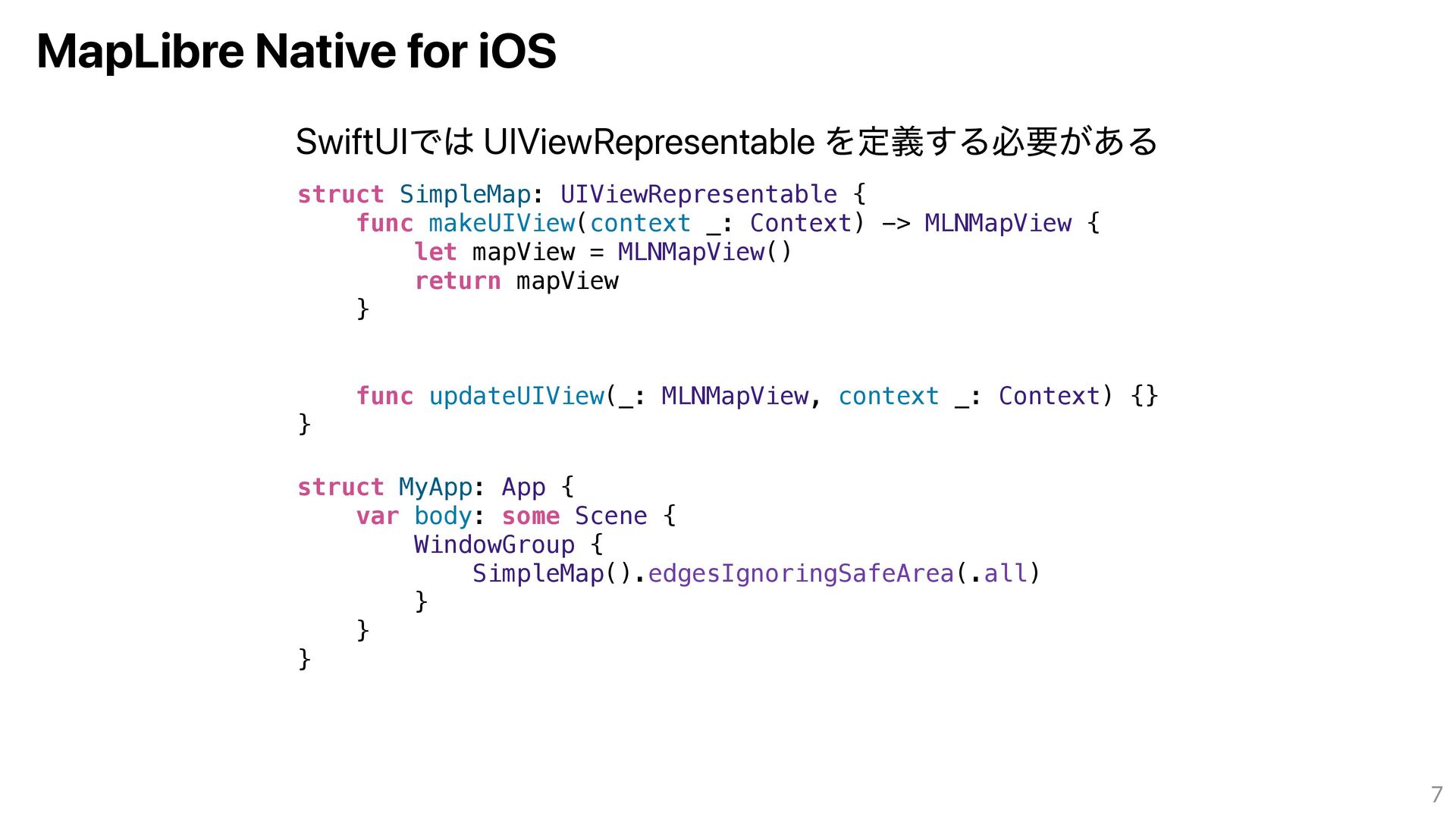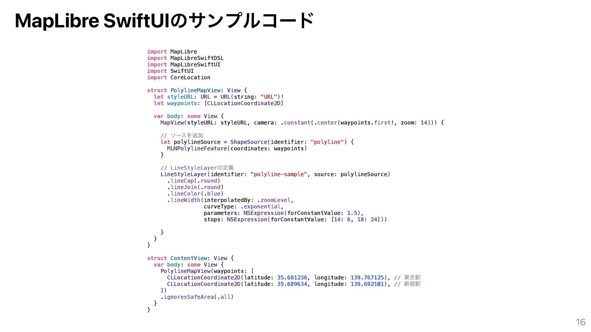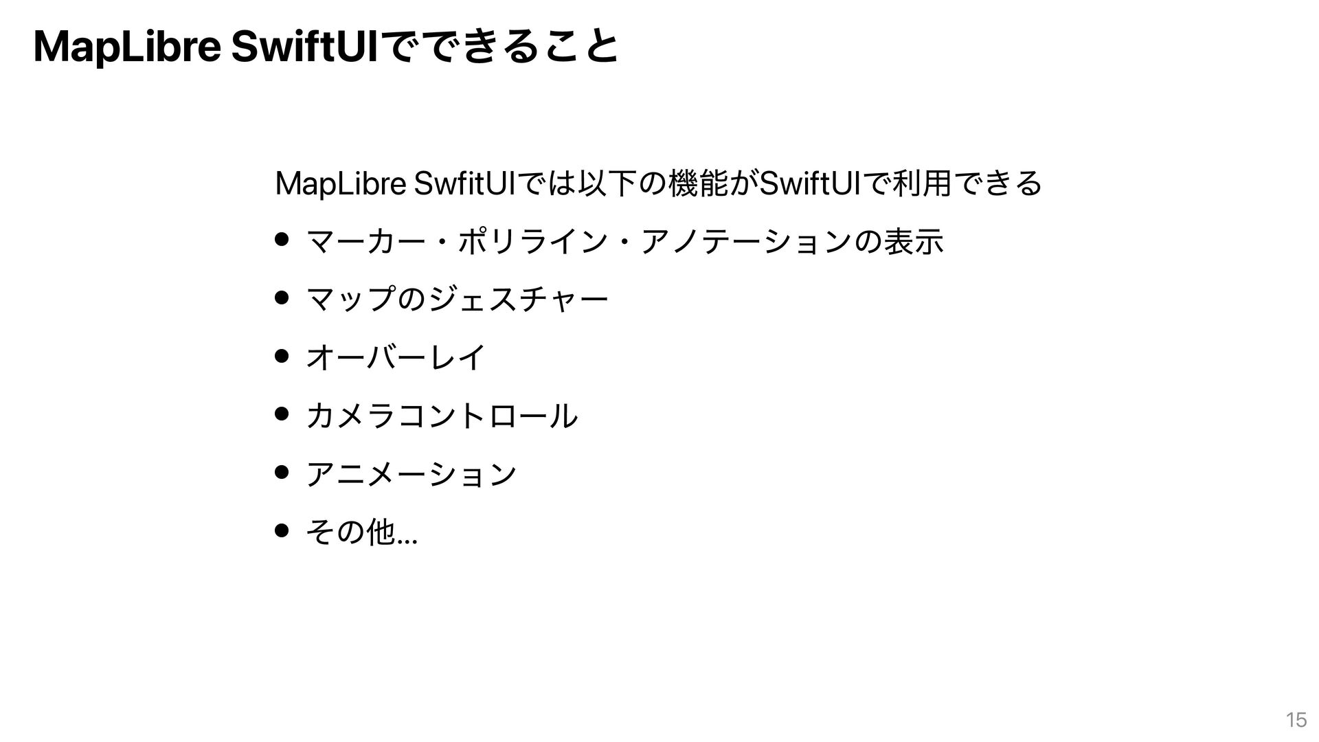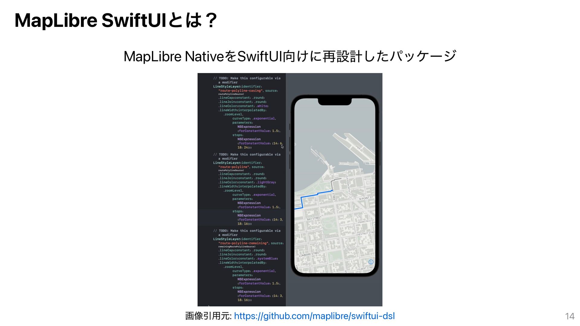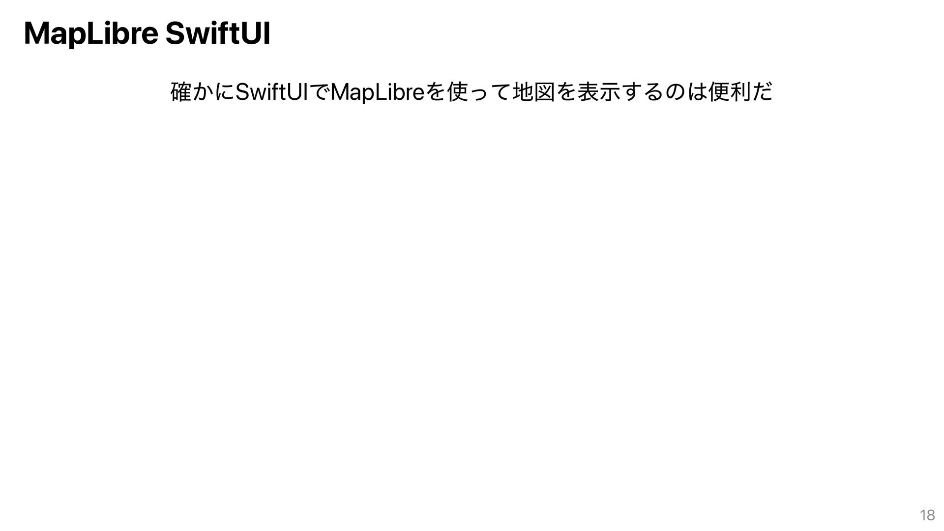 MapLibreにおいても、MapLibre SwiftUIが登場して宣言的にMapLibreベースのマップが定義できるようになっています。
