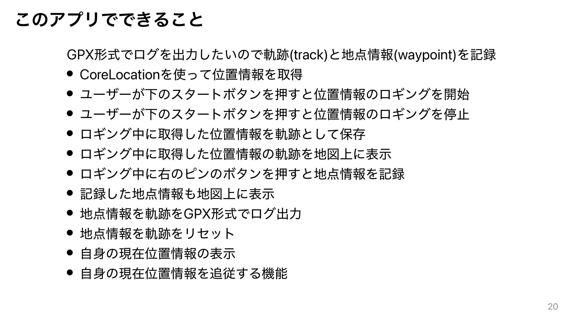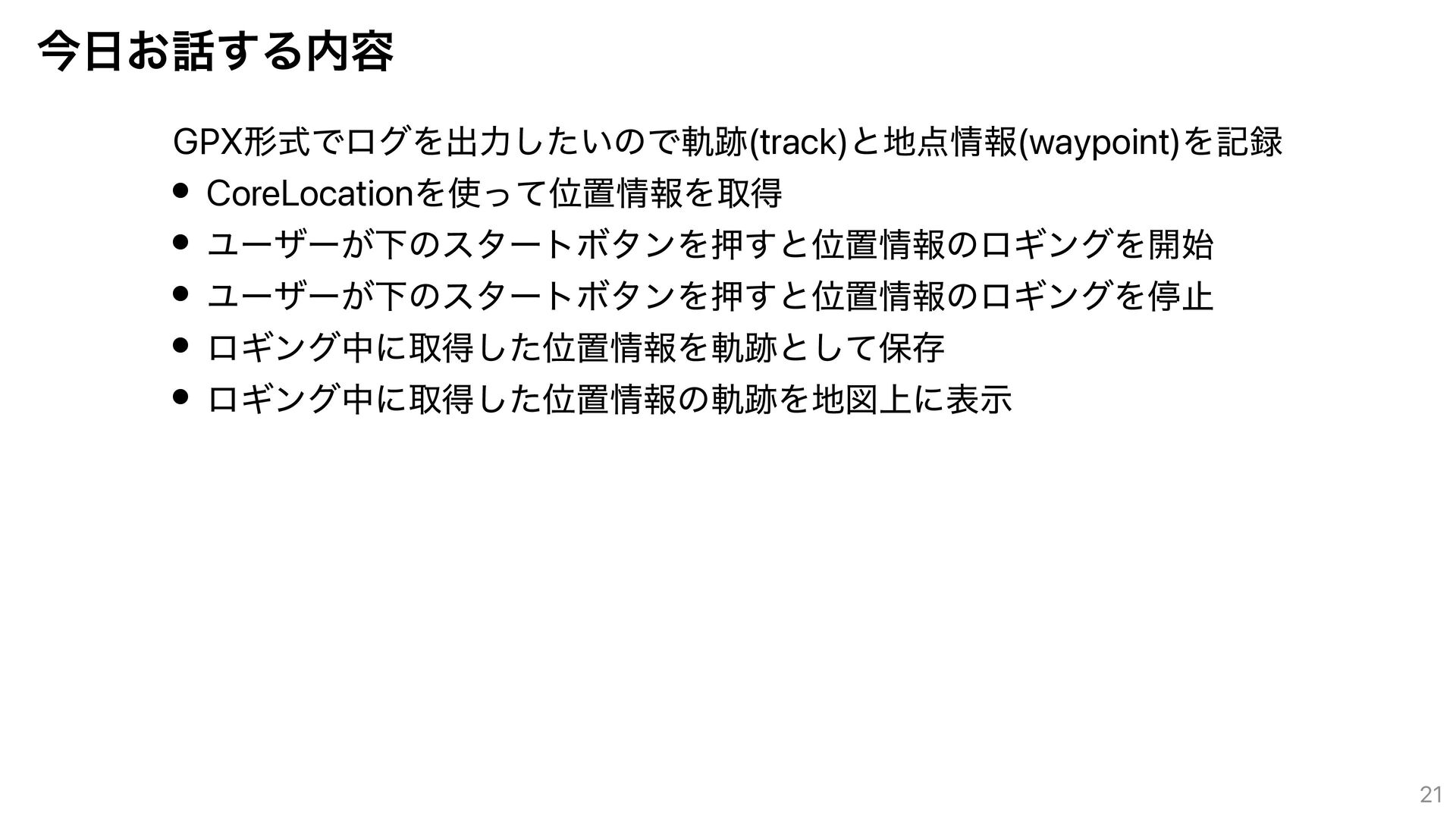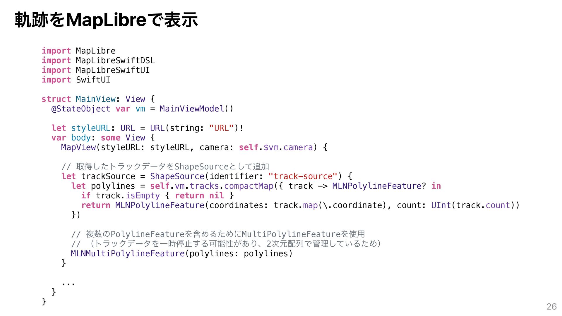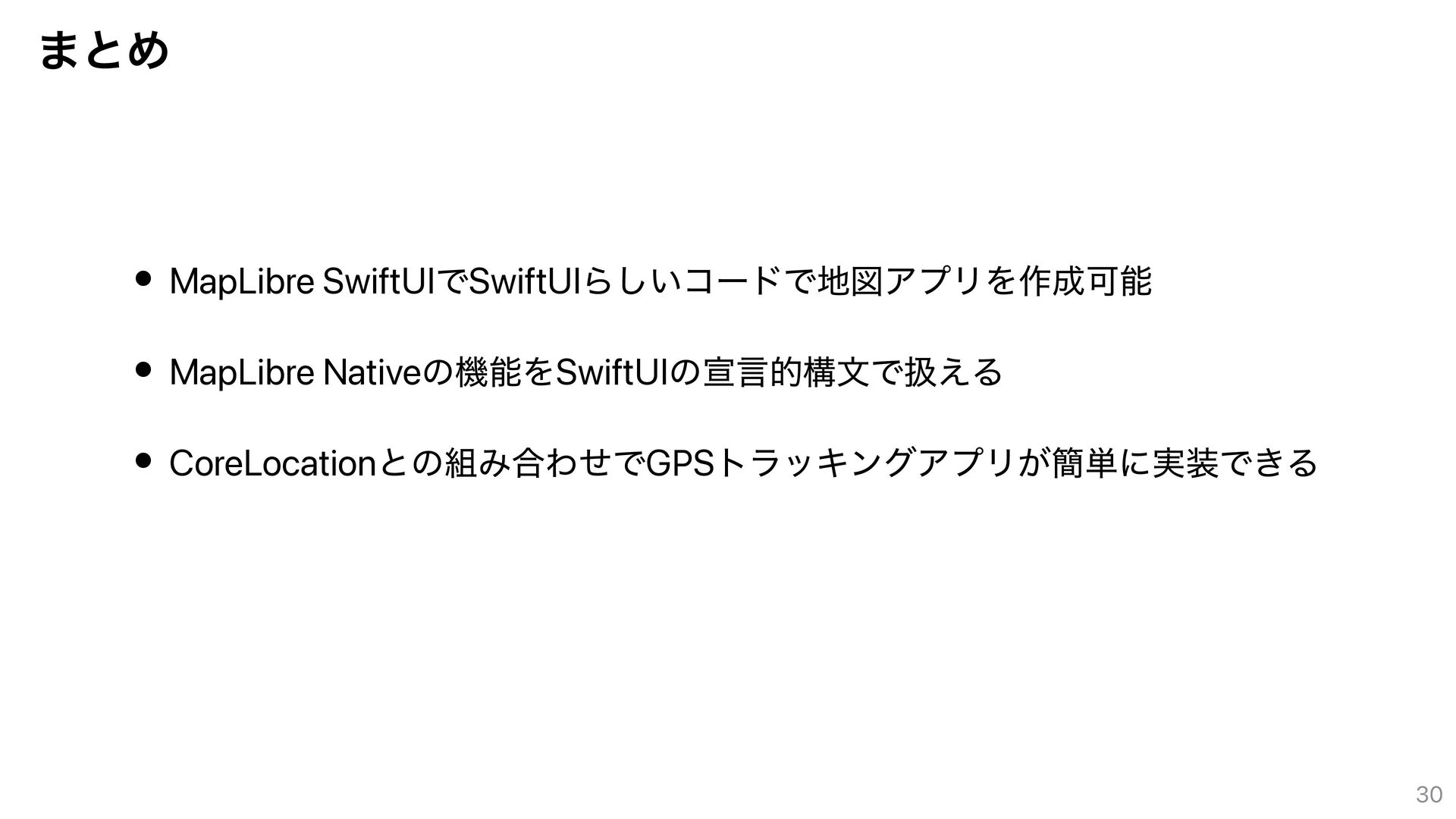 このプレゼンテーションでは、MapLibre SwiftUIを使ってGPSトラッキングアプリケーションを作ってみましたので、それを基にMapLibre SwiftUIのTipsを共有したいと思います。