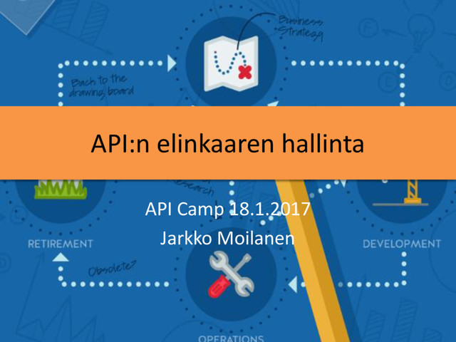 • Kerro julkisesti -> toitota eri medioissa mitä kohderyhmä seuraa • Helpota siirtymistä pois – jos korvaava rajapinta tee migraatiota varten ohjeet/opas • Blackout testing, eli suunnitellusti hetkeksi töpseli seinästä • Varmista ettet siko käyttöehtoja tai sopimuksia asiakkaiden kanssa Vaihe 4: Eläköityminen