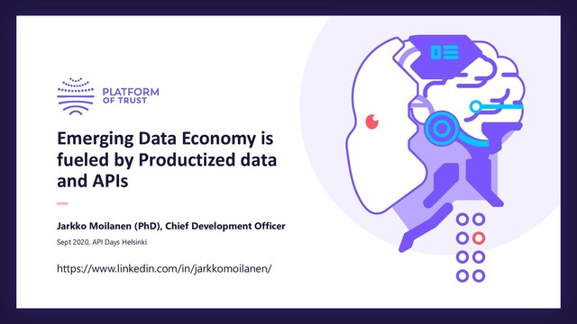 the era of data around 2009 Lacked monetization models and thinking – ”provice access” @Jarkko_Moilanen Focus today: APIs as Data Economy plumbing offering access to data products