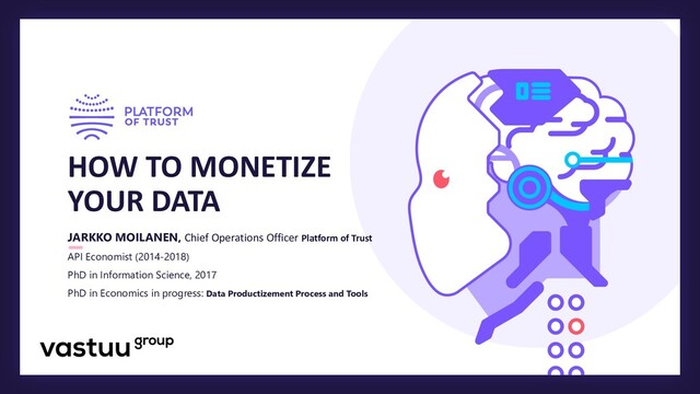 • Identify customer problems • Better product presentations • Improve customer service and • Use more tailored sales argumentation Product development purposes • Finding flaws • A/B testing • Test need for a new feature • Customer behaviour @Jarkko_Moilanen Internal monetization (has been done for years) Identify problems and bottlenecks • Identify bottlenecks • Improve efficiency and profitability • Fine tune based on facts, not feelings Marketing and advertising • Increasing performance and targeting • End of mass marketing • Personal marketing • Targeted ads