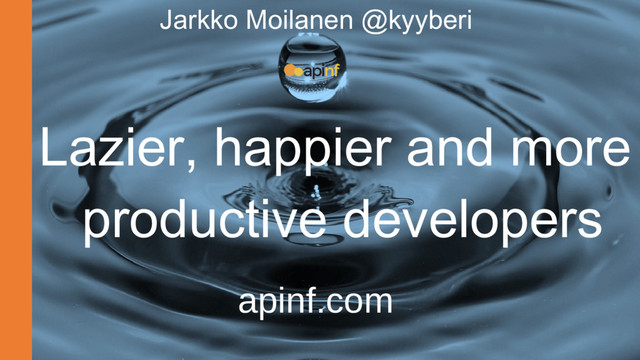 fast start & first impression – ”This is easy!” ➔ Under 5 minutes in use in own code ➔ Self-service ➔ If you provide SDKs – installation from package management ➔ Plan versioning and lifecycle – retirement takes months ➔ Provide roadmap Productise Your APIs