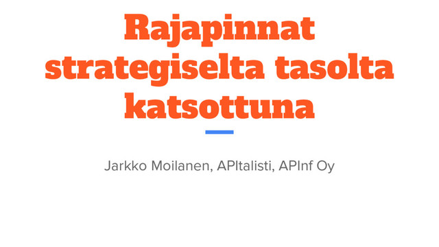 Ukraina) Rakennamme asiakkaille rajapintoihin perustuvia digitaalisia alustoja (ml älykaupungit) Autamme API -strategian luonnissa ja toimeenpanossa API-hallintaratkaisu, apinf.io (100% avointa lähdekoodia) Moniorganisaatio tuki, multiproxy tuki (REST + IoT) Skaalautuva ja taloudellinen kehittäjätuki, apibot.ai Tekninen APIOps -yhteisö, liiketoiminnan APItalist -yhteisö