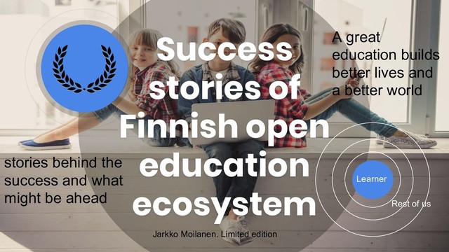 Edtech accelerator 10-16 years old Pupils + teachers + companies + local schools 16+ years old Universities + companies + local schools startup startup growth Startup with product Investors Finnish 5 500 000 population as testbed Ideas from the users Co-created together Growth path to success Large testbed Thousands of schools Apps and services