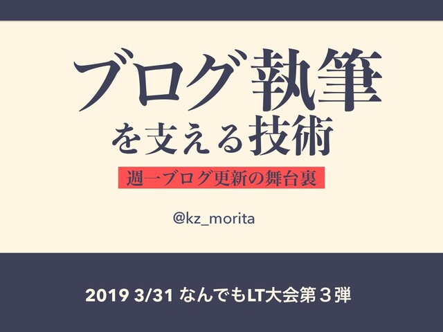 ɹɹɹࣥච Λࢧ͑Δٕज़ िҰϒϩάߋ৽ͷཪ ϒϩά @kz_morita 2019 3/31 ͳΜͰLTେձୈ̏