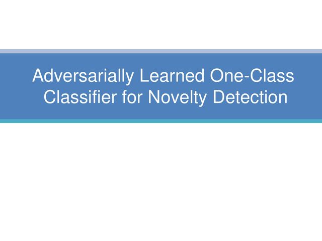 Sabokrou, Mohammad, et al. "Adversarially learned one-class classifier for novelty detection." Proceedings of the IEEE conference on computer vision and pattern recognition. 2018.