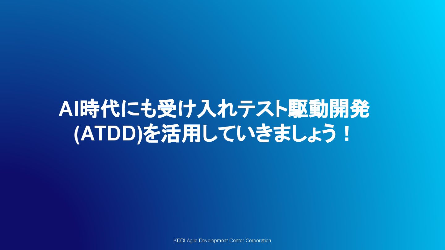 KDDI Agile Development Center Corporation AI時代にも受け入れテスト駆動開発 (ATDD)を活用していきましょう!