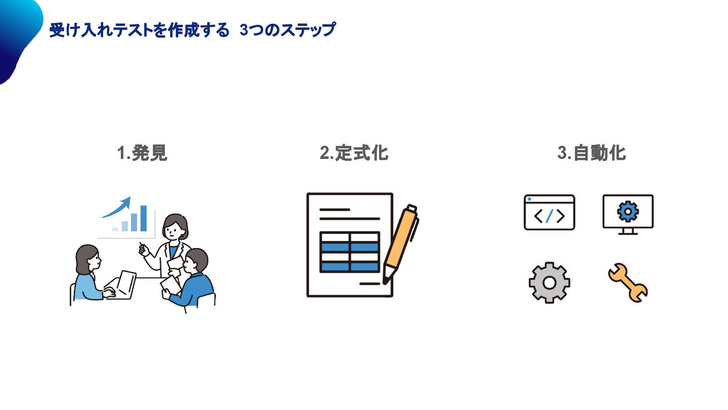 受け入れテストを作成する 3つのステップ 1.発見 2.定式化 3.自動化