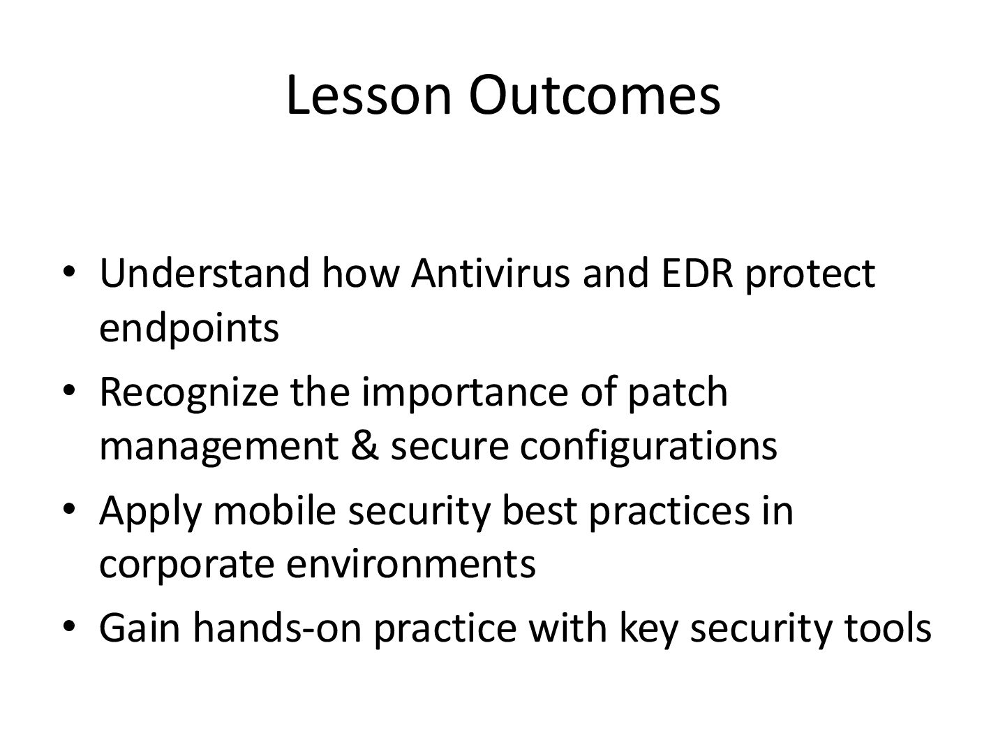 Lesson Outcomes • Understand how Antivirus and EDR protect endpoints