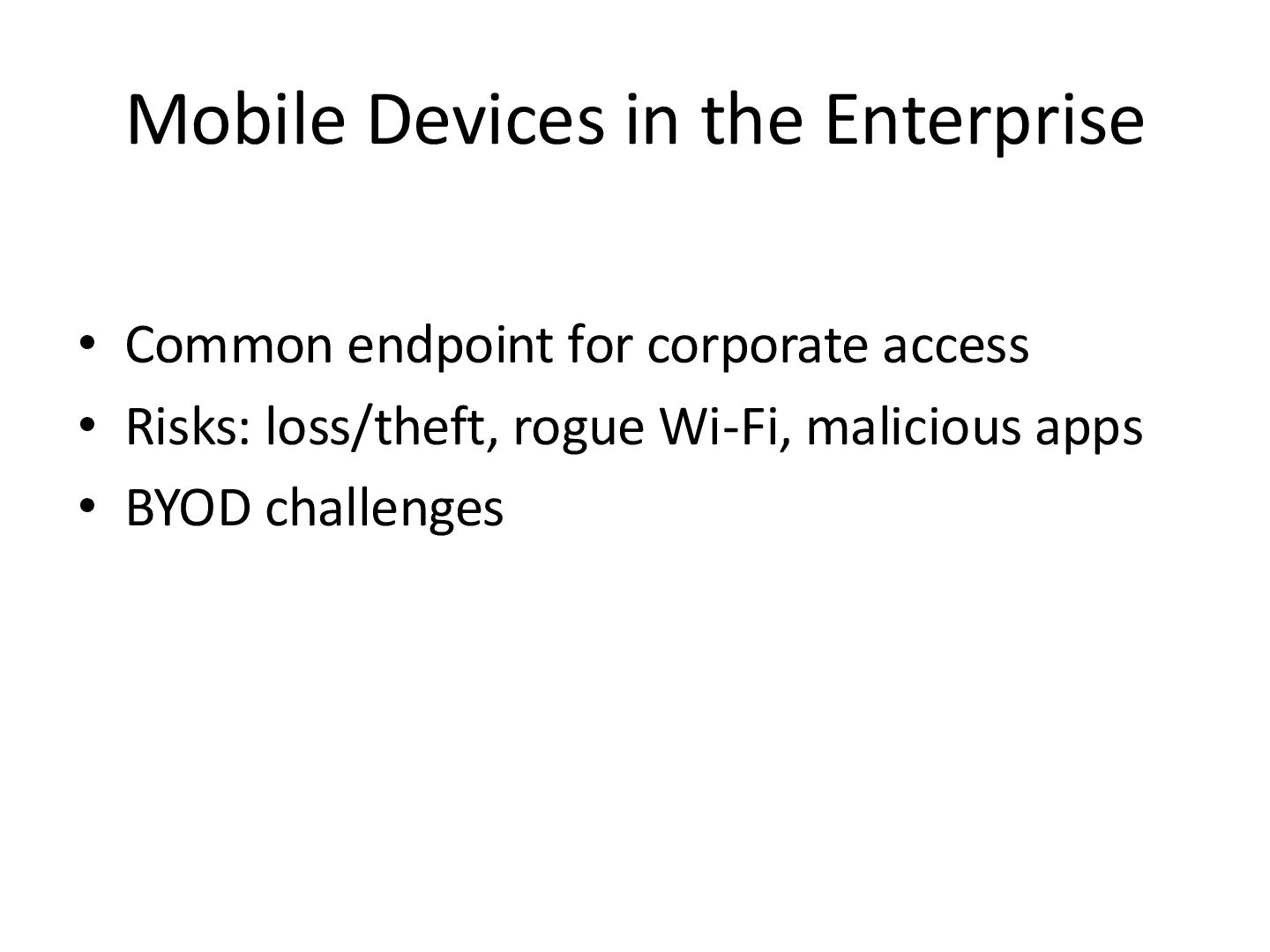 Mobile Devices in the Enterprise • Common endpoint for corporate