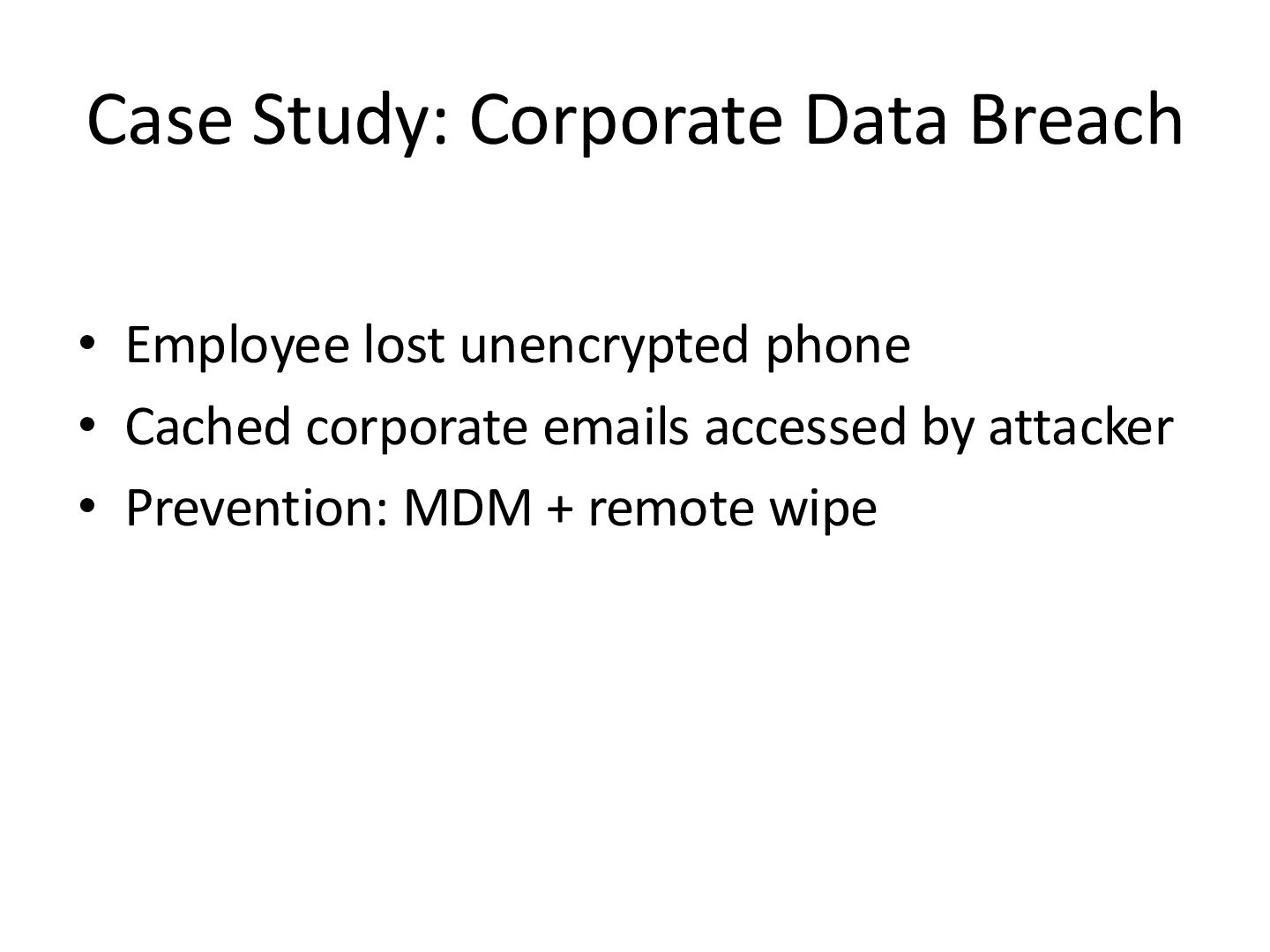 Case Study: Corporate Data Breach • Employee lost unencrypted phone