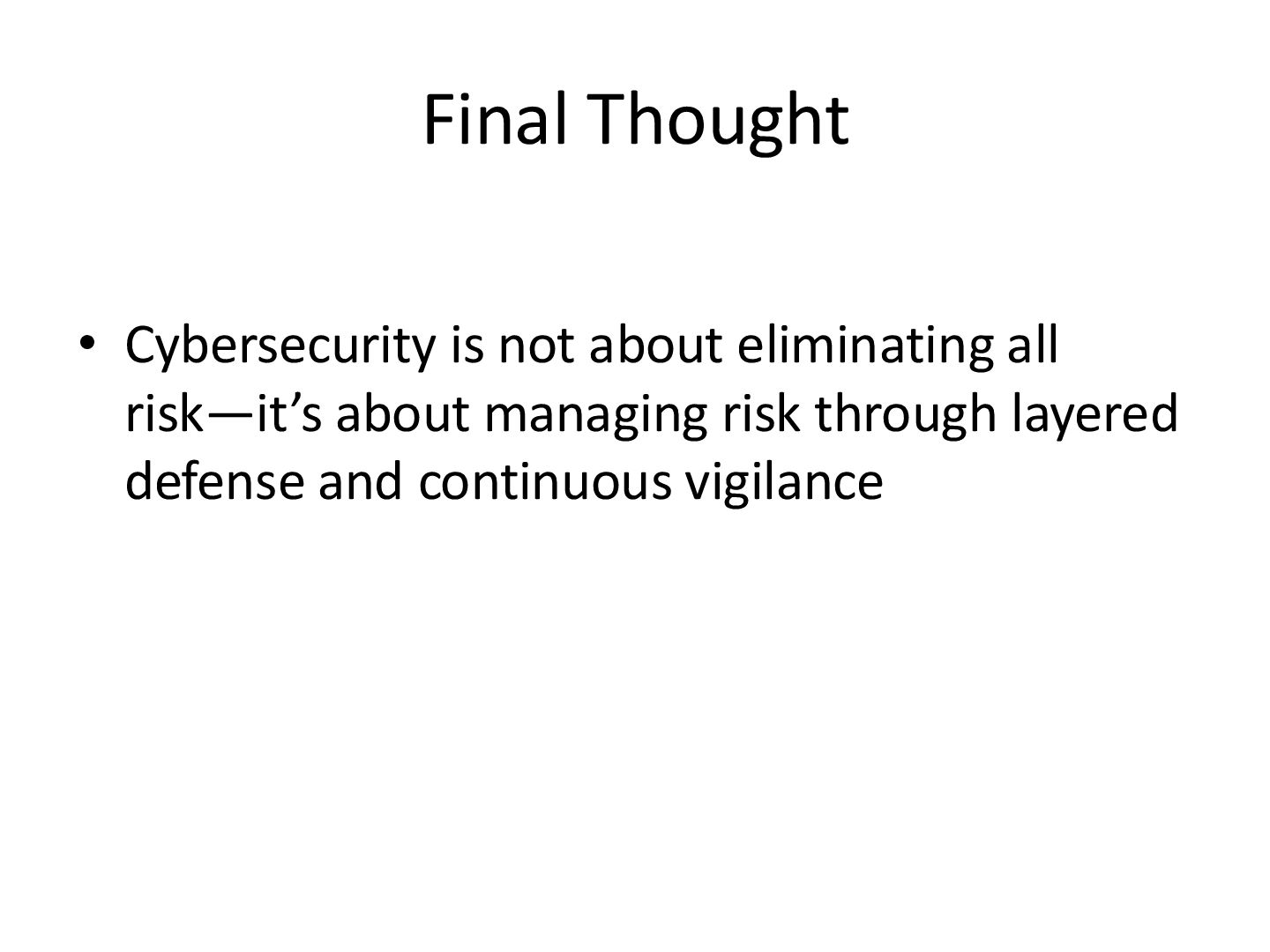 Final Thought • Cybersecurity is not about eliminating all risk—it’s