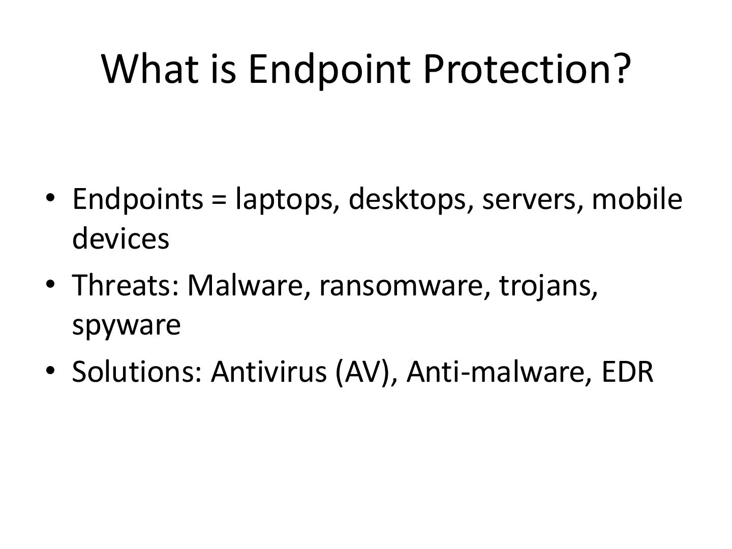 What is Endpoint Protection? • Endpoints = laptops, desktops, servers,