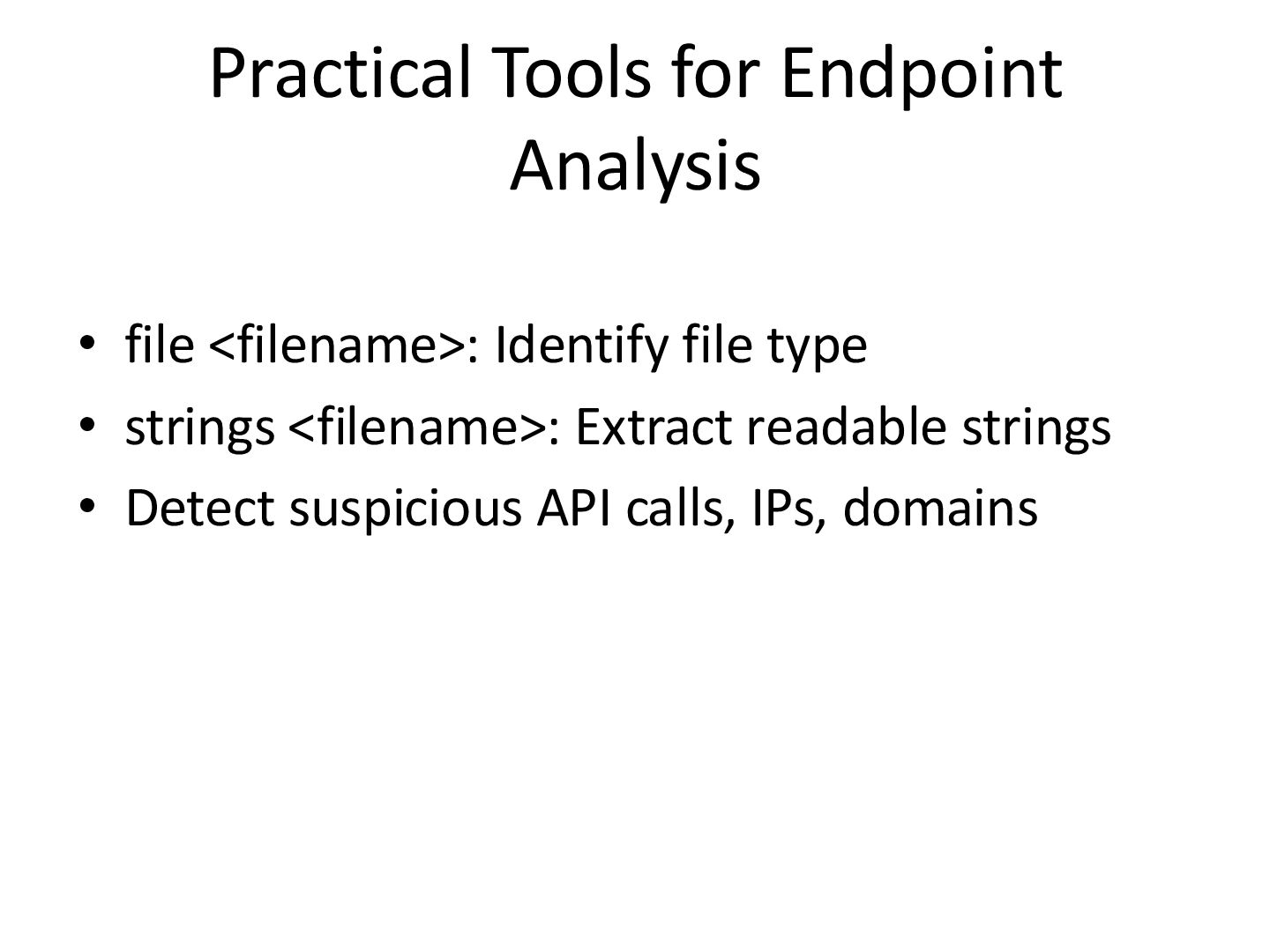 Practical Tools for Endpoint Analysis • file <filename>: Identify file