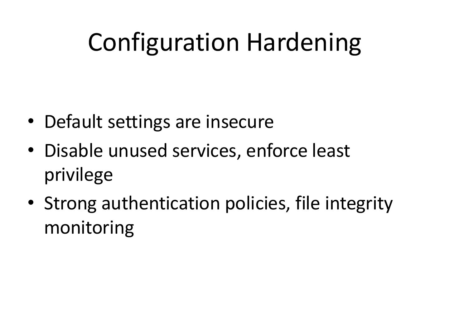 services, enforce least privilege • Strong authentication policies, file integrity monitoring