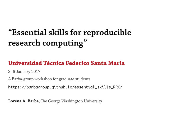 A lecture as part of the workshop "Essential skills for reproducible research computing," at Universidad Técnica Federico Santa María (January 2017).