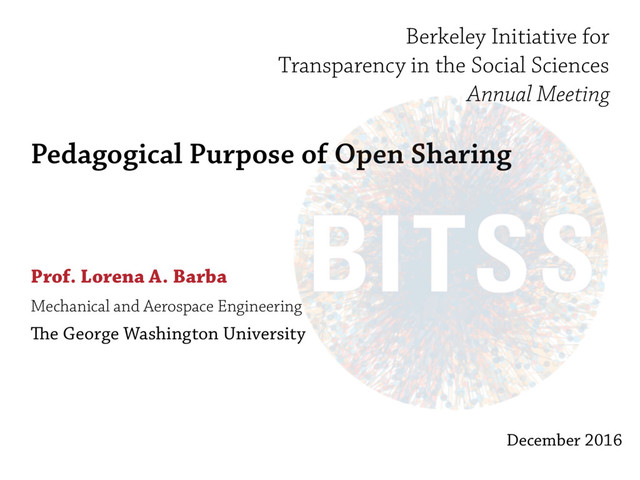 At the opening keynote of the 2016 Annual Meeting of the Berkeley Initiative for Transparency in the Social Sciences (BITSS), Prof. Barba discussed the pedagogical purpose of open sharing—how openness enriches our capacity to create knowledge together.