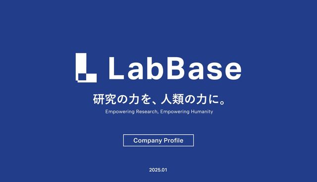 OB会 学術誌 学術誌 小・中・高生 小・中・高生 学会 学会 政府・ 政策決定者 政府・ 政策決定者 大学 研究者 大学 研究者 科学 愛好者 科学 愛好者 研究室 研究室 研究室 企業 研究者/技術者 企業 研究者/技術者 学部生 修士 / 博士 学部生 修士 / 博士 Deep Tech ベンチャー Deep Tech ベンチャー 企業 企業 研究室とあなたをつなぐ 研究を頑張る理系学生と 企業をつなぐ 研究開発者・技術者と 企業をつなぐ The Research Empowerment Platform LabBaseは、研究ステークホルダー同士を 相互に可視化し、出会いを生む場です。 会 社 概 要 / / サ ー ビ ス 紹 介 / 組 織 ・ 働 く 環 境 / 募 集 職 種 研 究 領 域 に 取 り 組 む 背 景