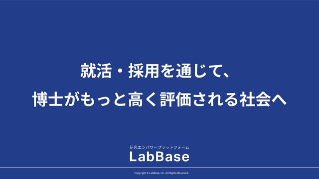 Copyright © LabBase, Inc. All Rights Reserved. 就活‧採⽤を通じて、 博⼠がもっと⾼く評価される社会へ