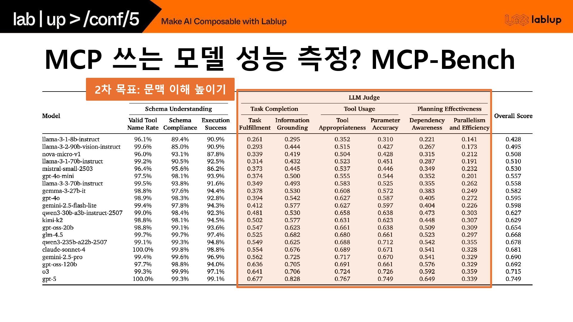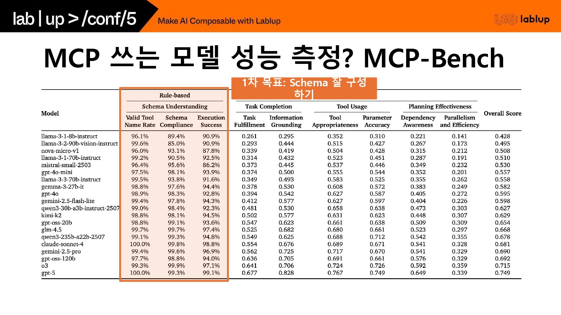 1차 목표: Schema 잘 구성 하기 MCP 쓰는 모델 성능