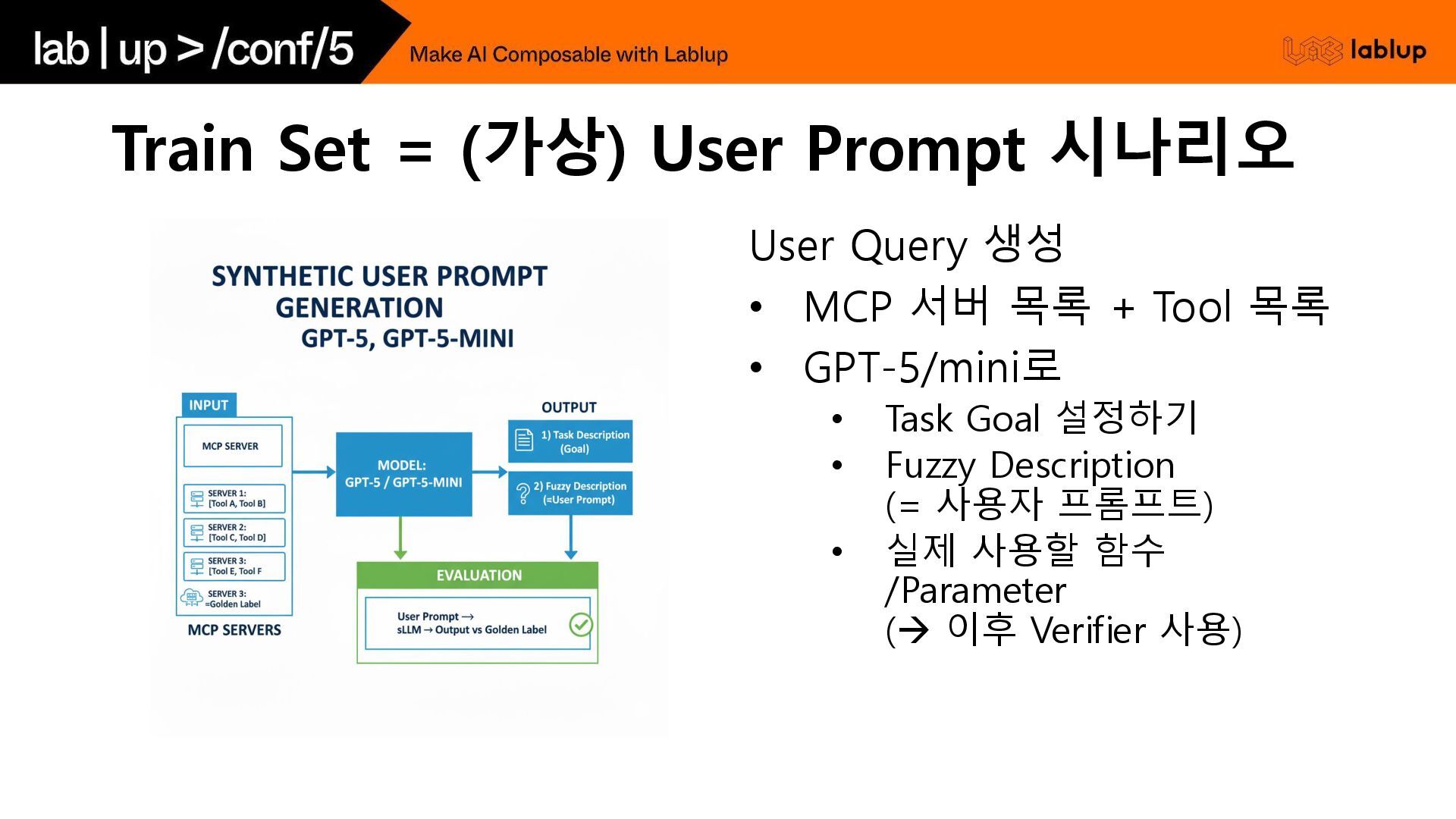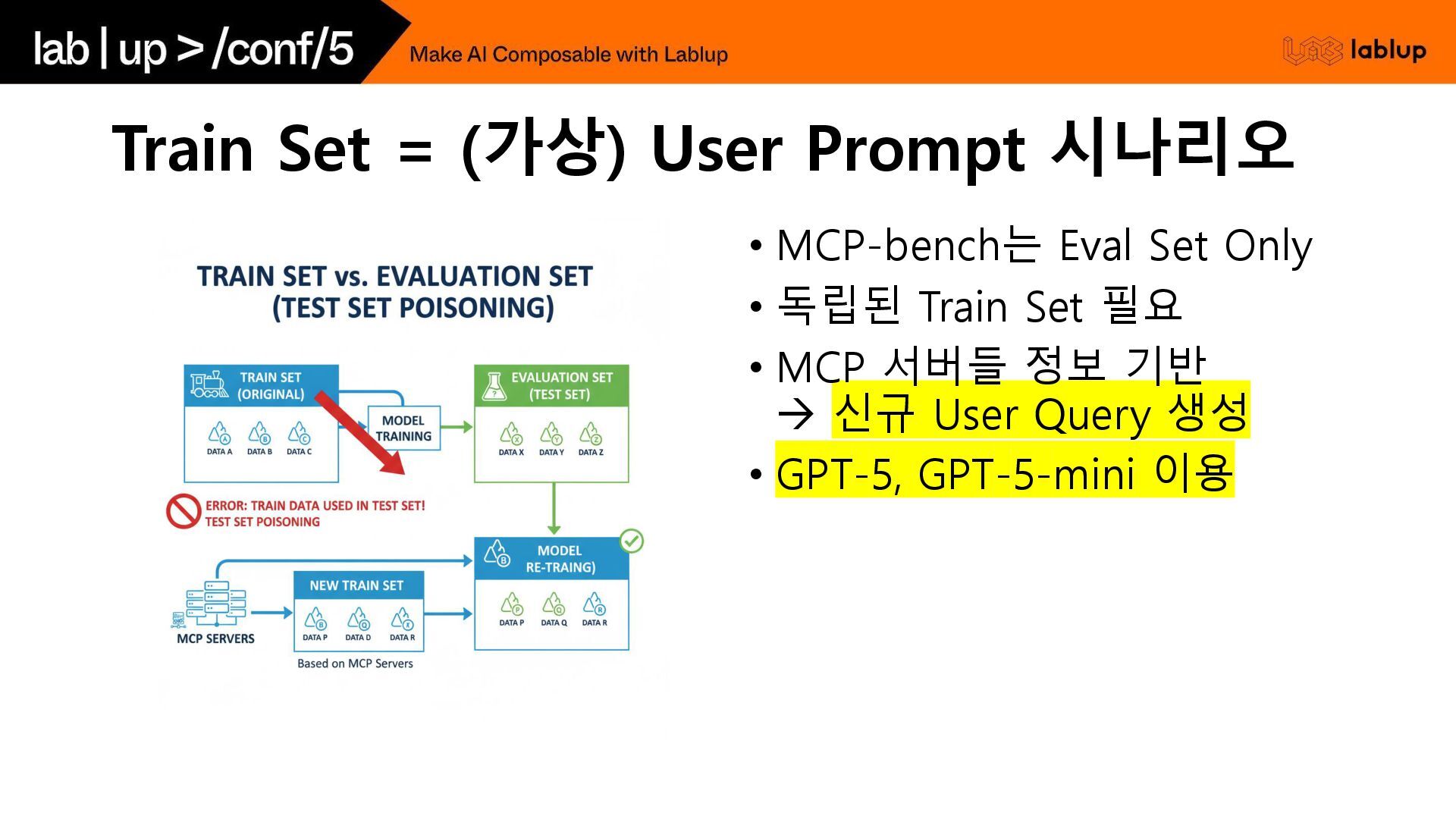 Set Only • 독립된 Train Set 필요 • MCP 서버들 정보 기반 → 신규 User Query 생성 • GPT-5, GPT-5-mini 이용