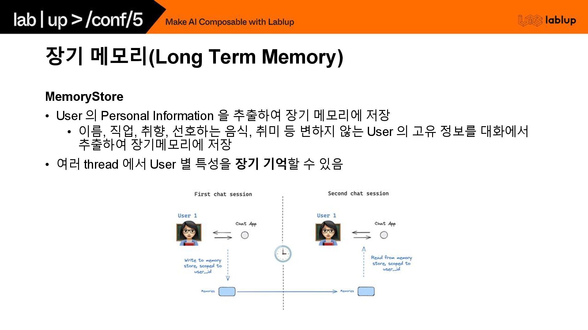 11. 장기 메모리(Long Term Memory) MemoryStore • User 의 Personal Information