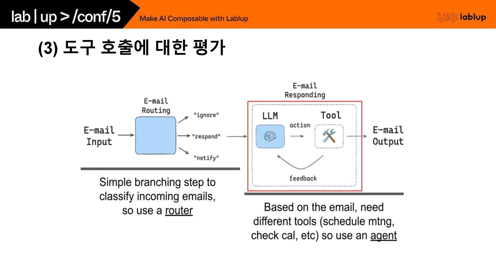 없는 데이터에 액세스하는 등의 핵심 구성 요소 *docstring: 툴 선택의 핵심 요소. LLM 이 잘 판단할 수 있도록 description 을 적는 것이 중요