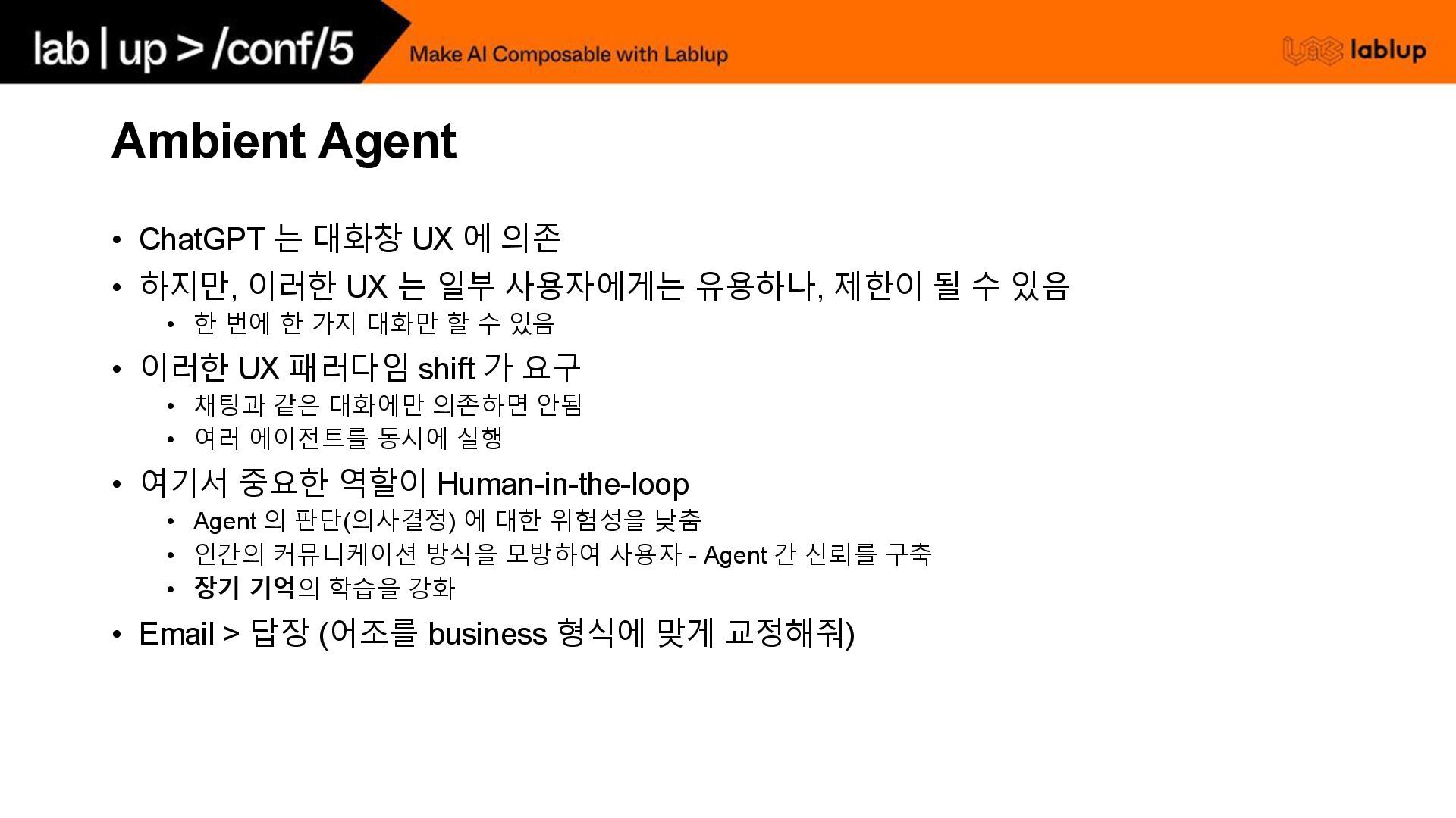 24. Ambient Agent • ChatGPT 는 대화창 UX 에 의존 •