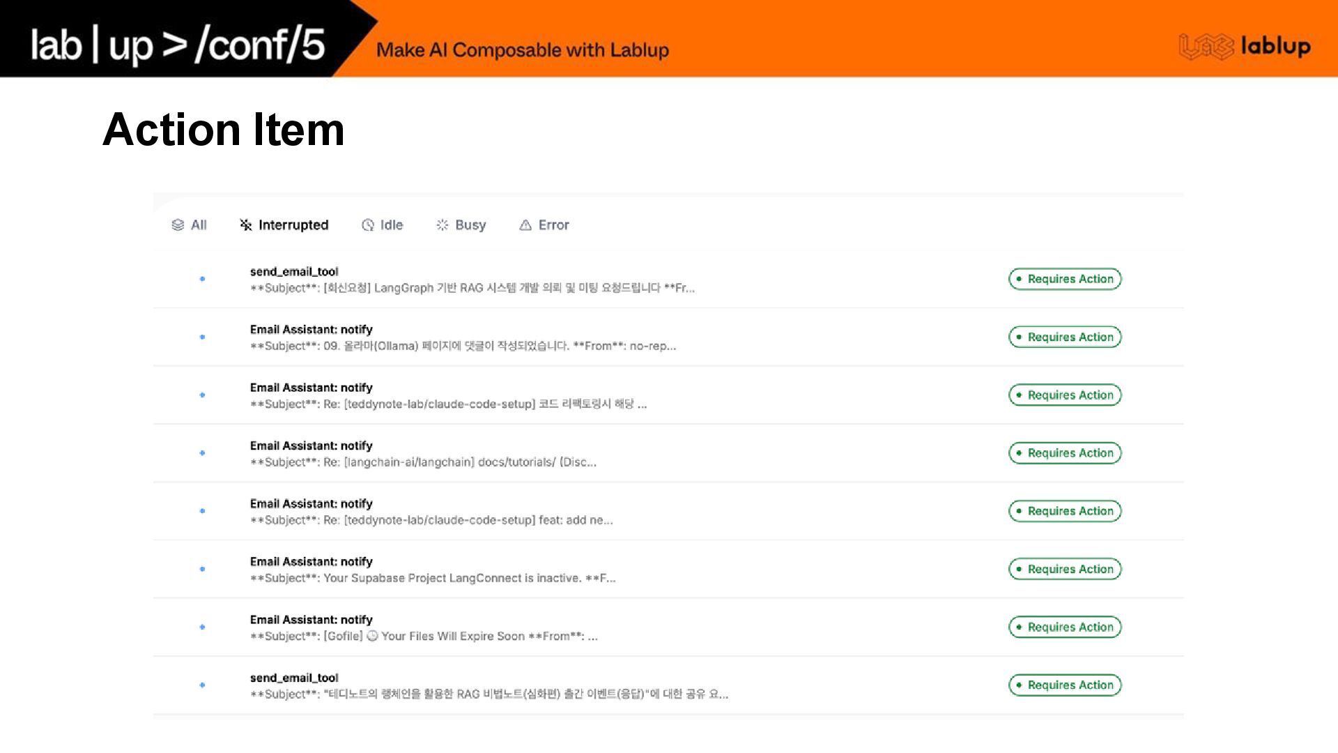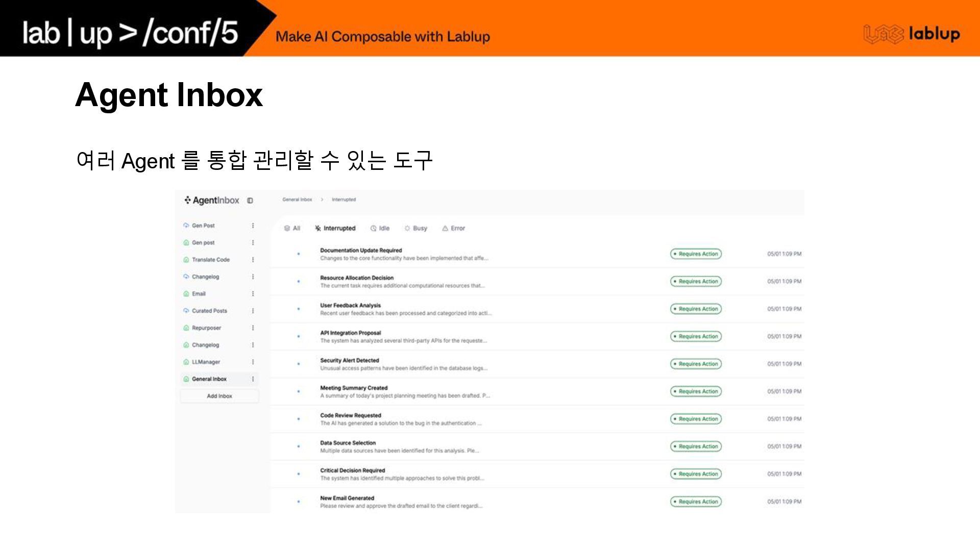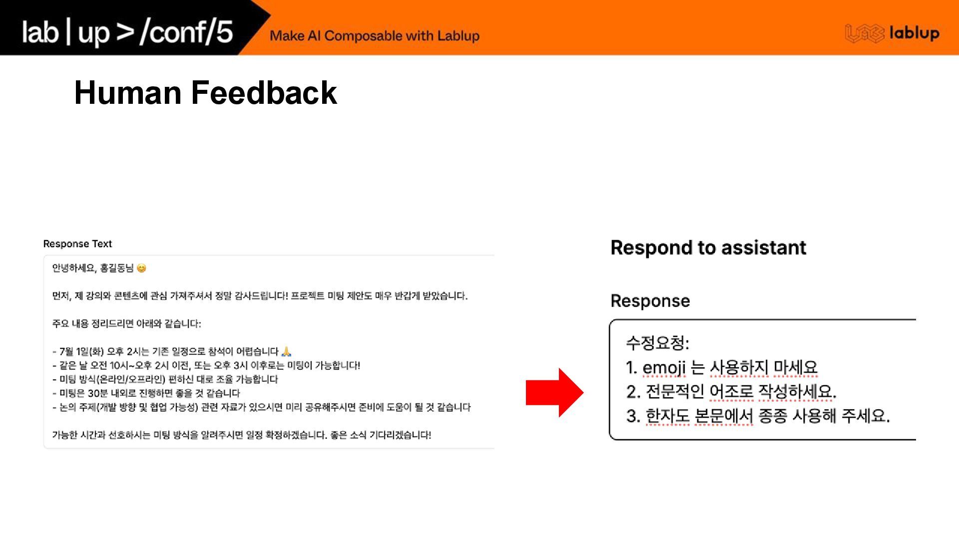 하지만, 이러한 UX 는 일부 사용자에게는 유용하나, 제한이 될 수 있음 • 한 번에 한 가지 대화만 할 수 있음 • 이러한 UX 패러다임 shift 가 요구 • 채팅과 같은 대화에만 의존하면 안됨 • 여러 에이전트를 동시에 실행 • 여기서 중요한 역할이 Human-in-the-loop • Agent 의 판단(의사결정) 에 대한 위험성을 낮춤 • 인간의 커뮤니케이션 방식을 모방하여 사용자 - Agent 간 신뢰를 구축 • 장기 기억의 학습을 강화 • Email > 답장 (어조를 business 형식에 맞게 교정해줘)
