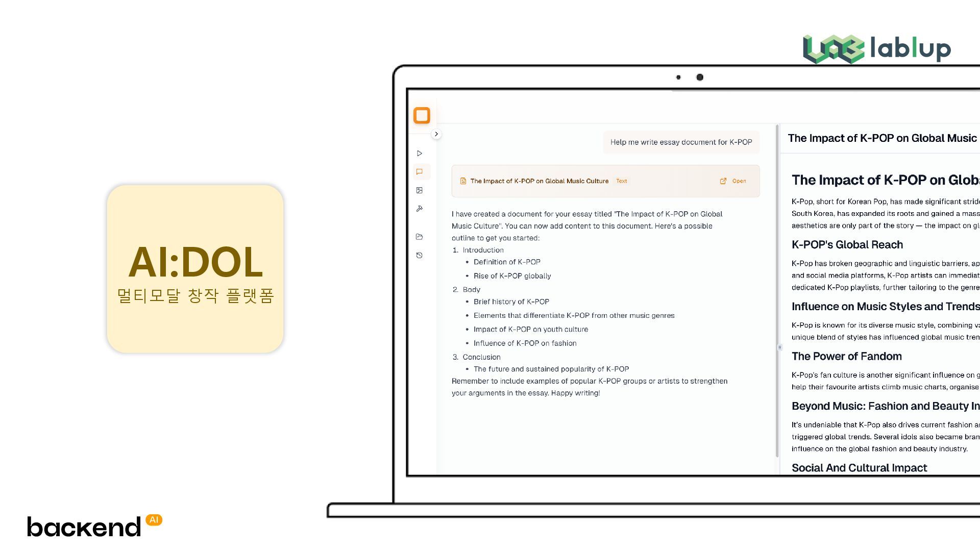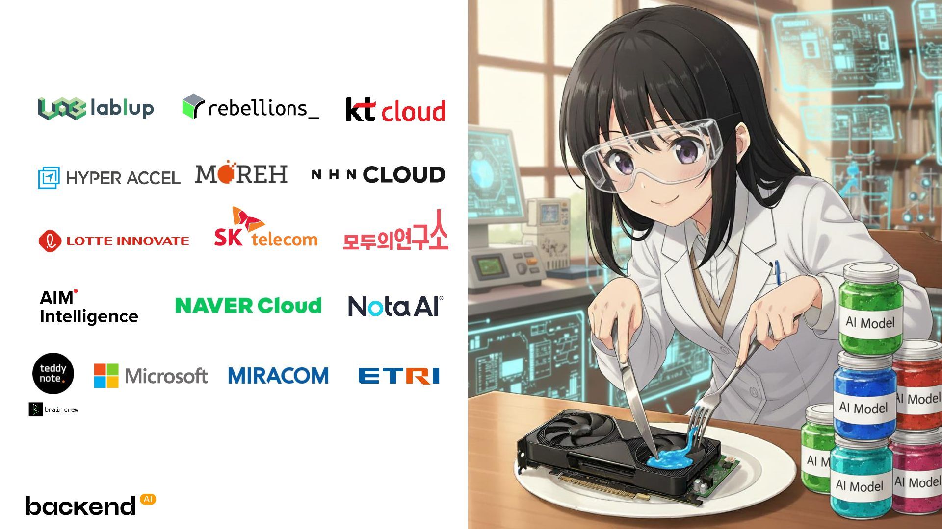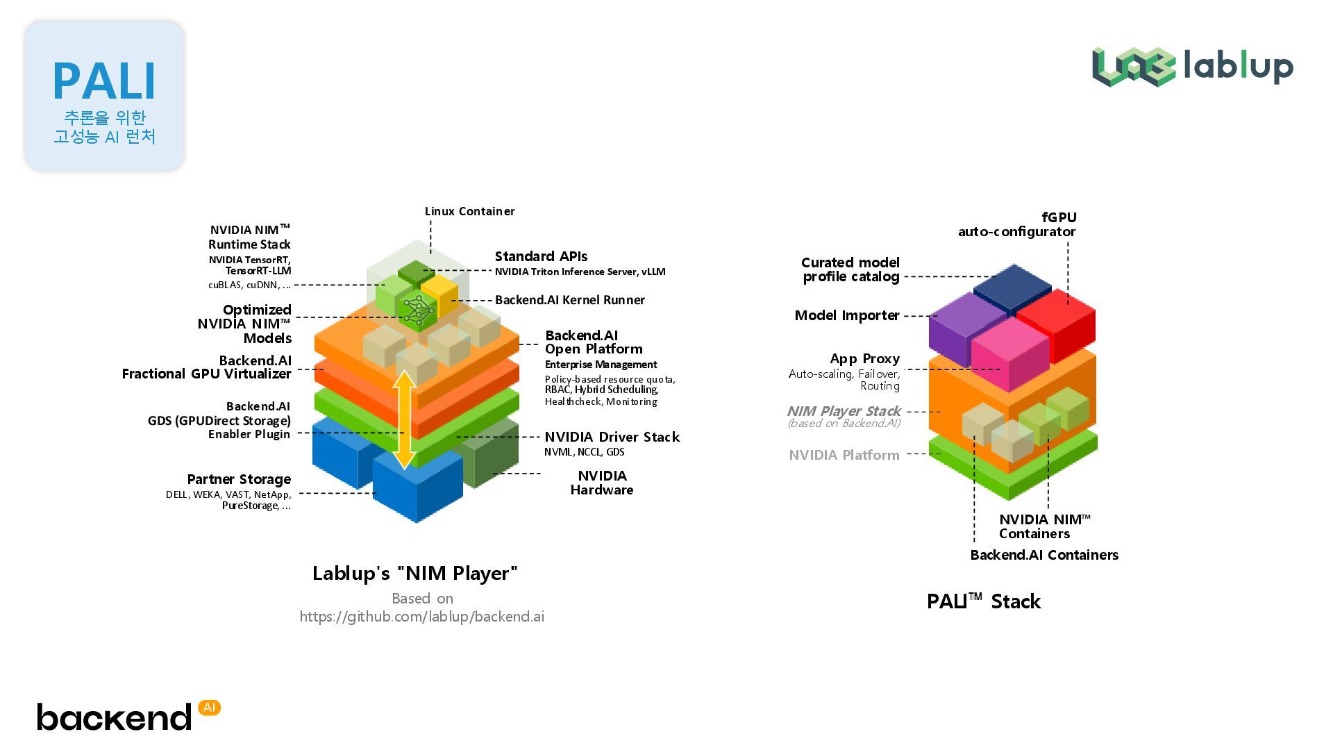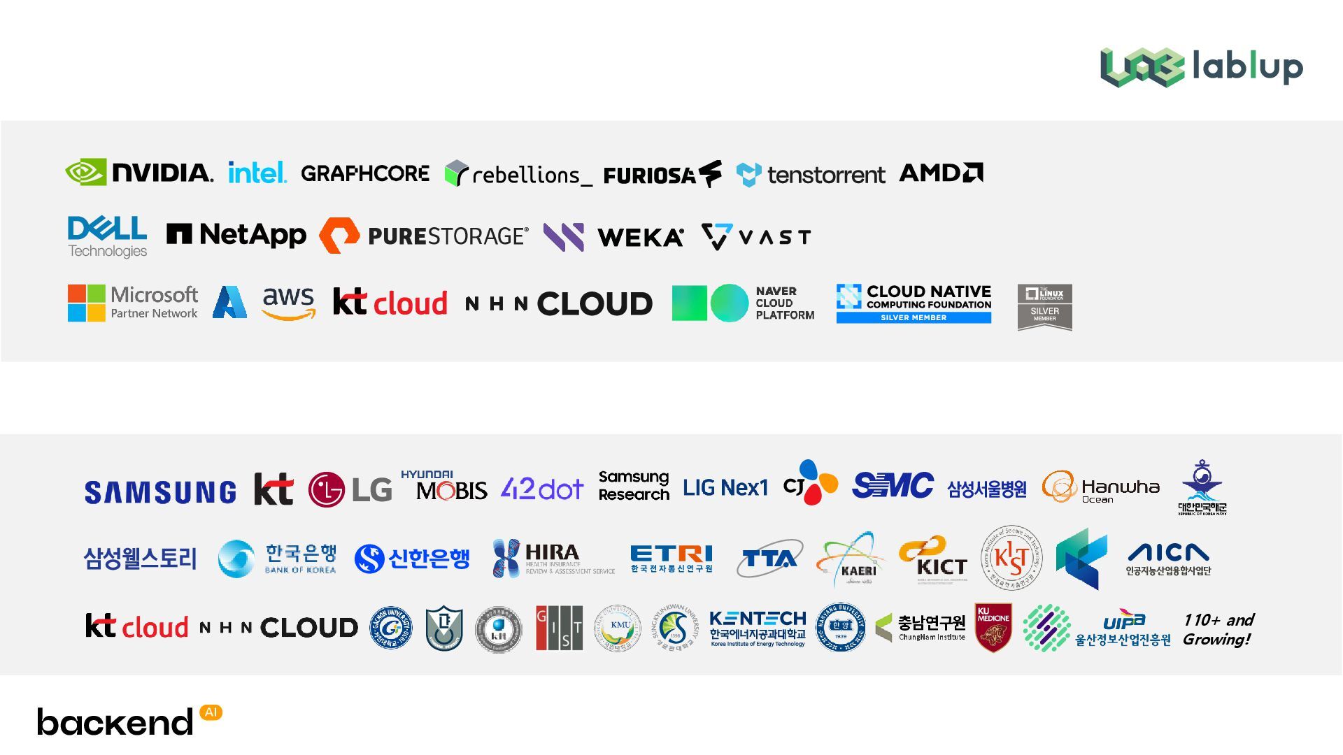 하드웨어 인프라스트럭처 PALANG 종합 언어 모델 플랫폼 Continuum 인텔리전트 페일오버 및 지능적 라우팅 시스템 AI:DOL 멀티모달 창작 플랫폼 FastTrack 프로젝트 기반 파이프라인 관리 MLOps / LLMOps finetun.ing 합성데이터 생성 기반 모델 얼라인먼트 플랫폼 Backend.AI Doctor 케이스 단위 문제 파악 및 자동 복구 솔루션