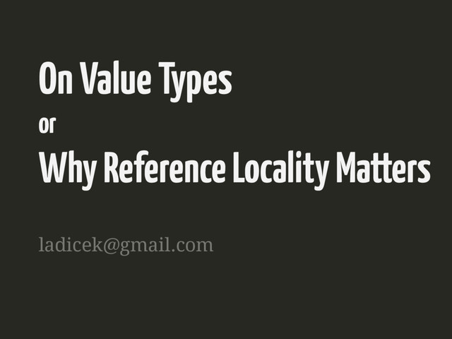The Valhalla project in OpenJDK has been exploring adding value types to Java and the JVM. This will hopefully come to fruition in one of the upcoming versions of the Java platform (though definitely not 9). In this talk, I will describe what value types and generic specialization are and show them live using the Valhalla prototype. I will also briefly touch another related topic, ObjectLayout.org. During these explanations, I will repeatedly stress the importance of reference locality to application performance and illustrate the difference using a couple of small JMH benchmarks.