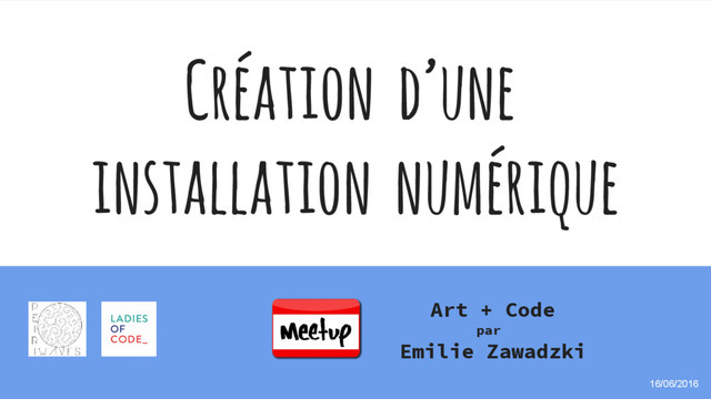 Présentation de Emilie Zawadzki lors de la Series speaker Ladies Of Code sur le thème soirée code + art.