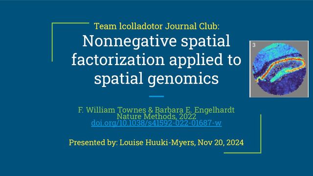Team lcolladotor Journal Club: Nonnegative spatial factorization applied to spatial genomics