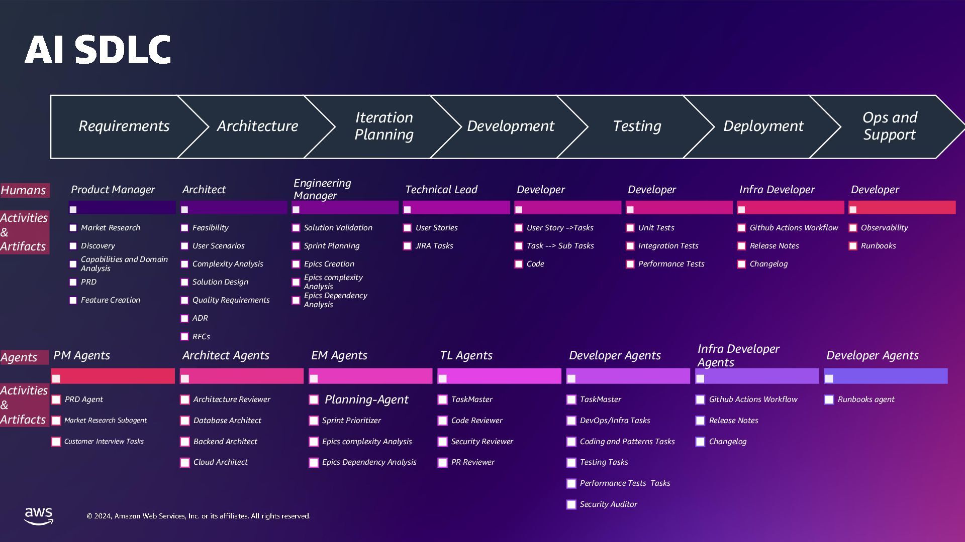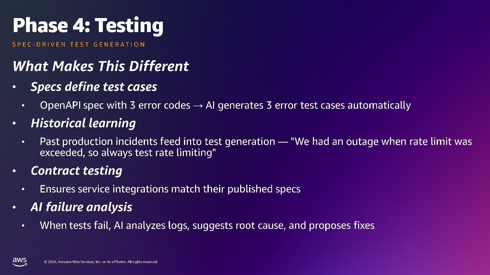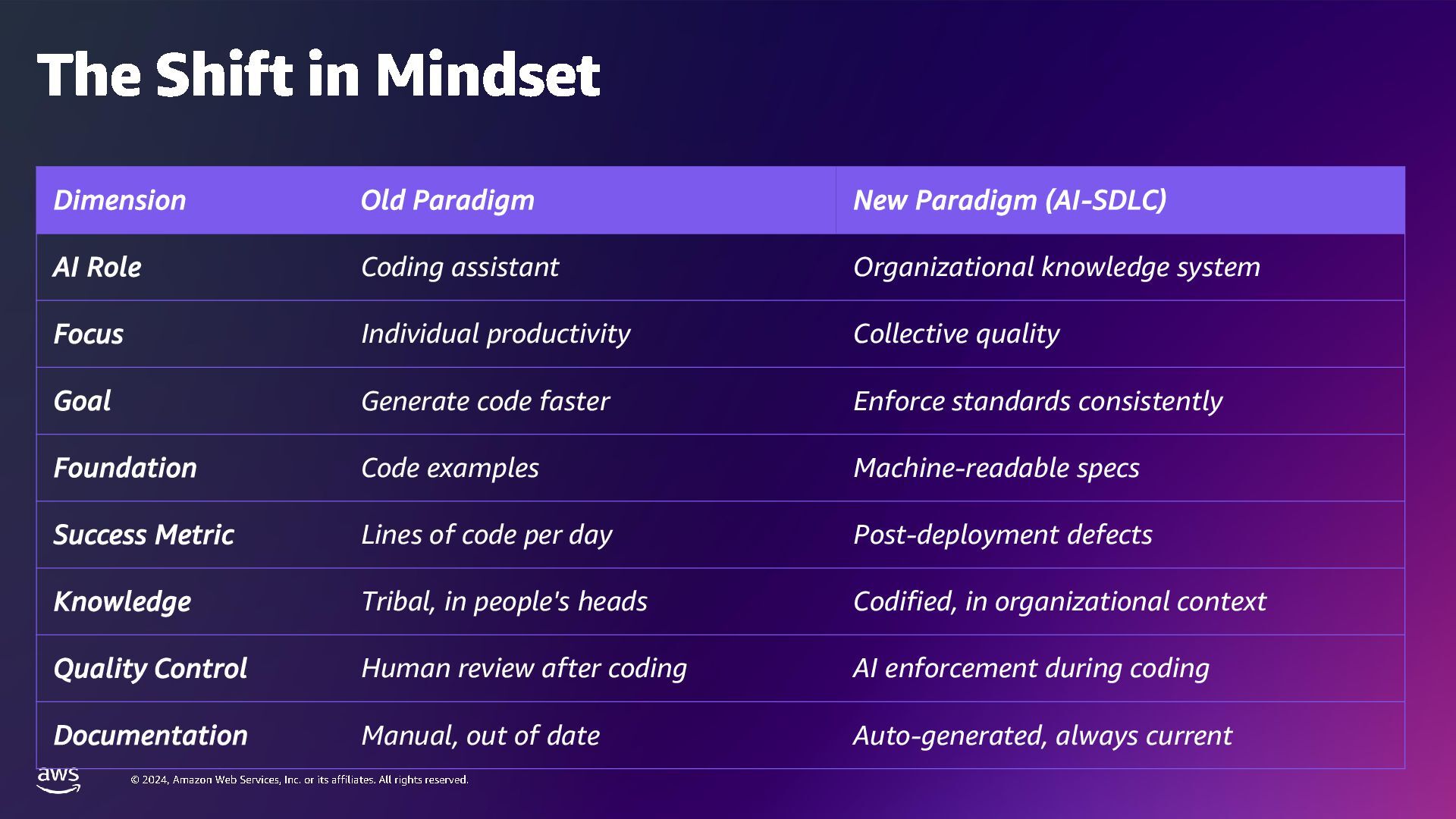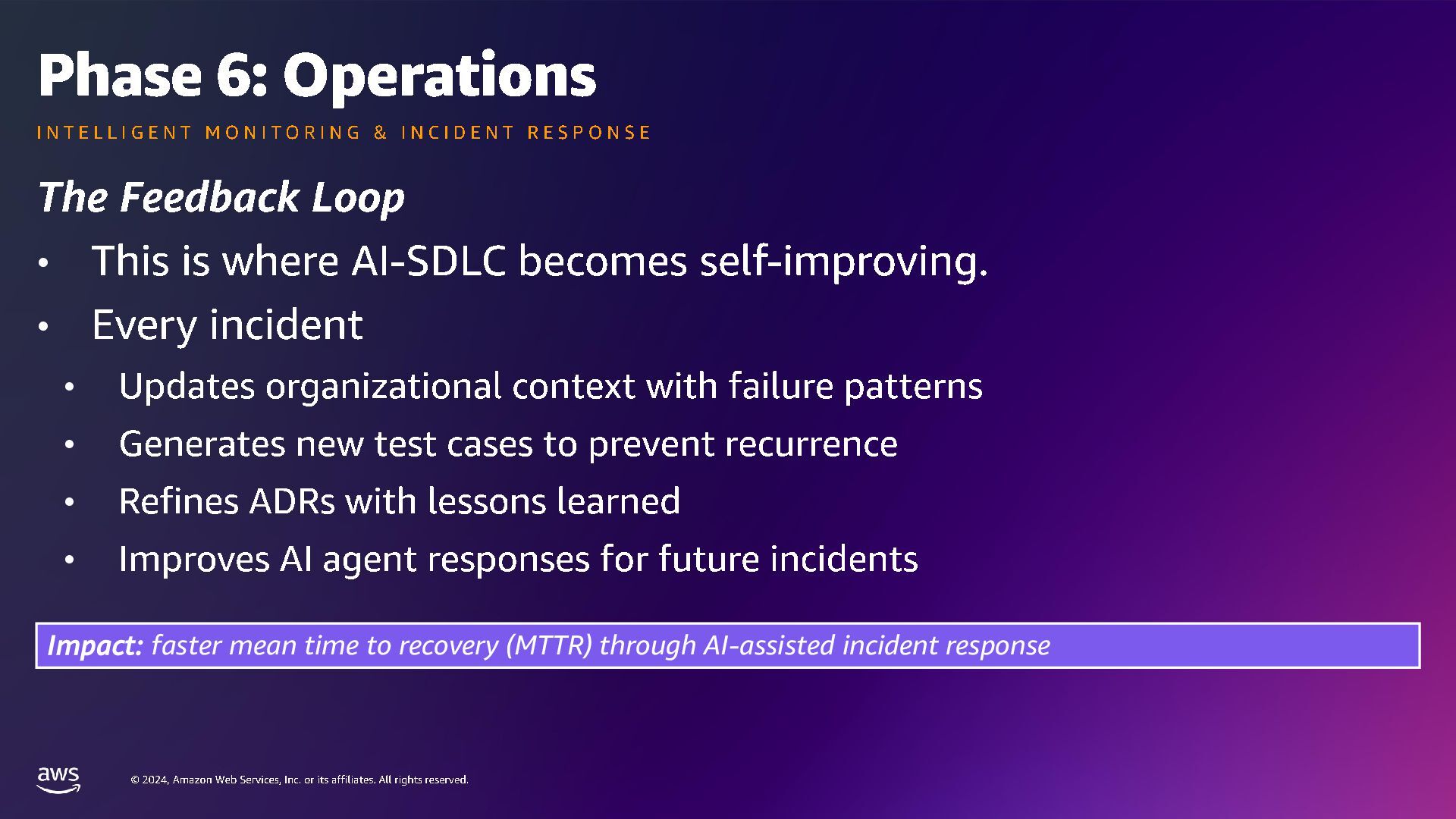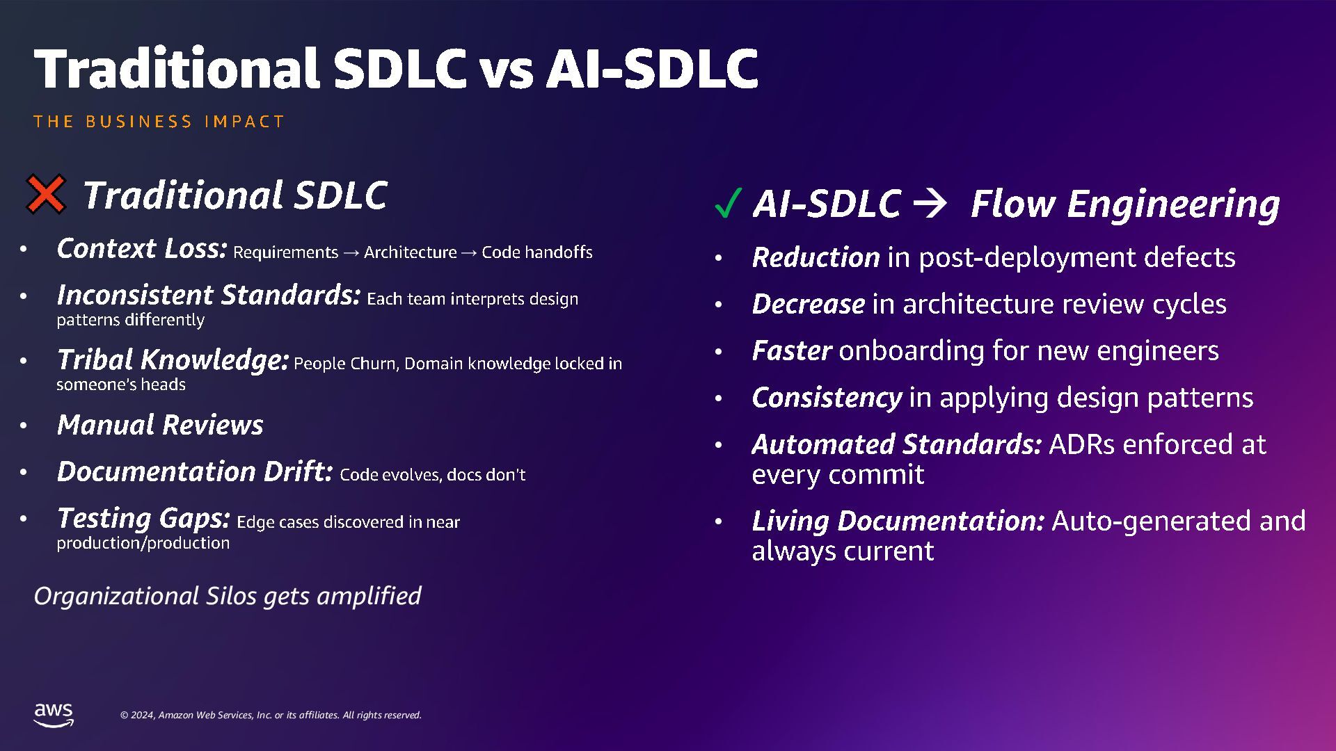 rights reserved. Organizational Context Pyramid In Practice Generated Artifacts • Output Layer (SDKs, Tests, Docs, Runbooks,) => Auto- generated always in sync with specs Intelligence Layer • AI Reasoning Layer (AWS Bedrock KG + Retrieval , Claude, Agents, Orchestration)→ Interprets context , enforces standards, generate artifacts Specifications Foundation • Context Layer (OpenAPI Specs, AsyncAPI, Event Schemas, ADRs, RFCs, Design Patterns, team topologies, risks catalogue) → Machine readable organizational knowledge Context is dynamic and fluid Automation AWS serverless for process orchestration Integration Points Tools for seamless workflow integration Agent Layer Claude with specialized sub-agents (AWS Bedrock) Retrieval Layer Semantic search for relevant context Context Store Versioned organizational knowledge repository (AWS S3)