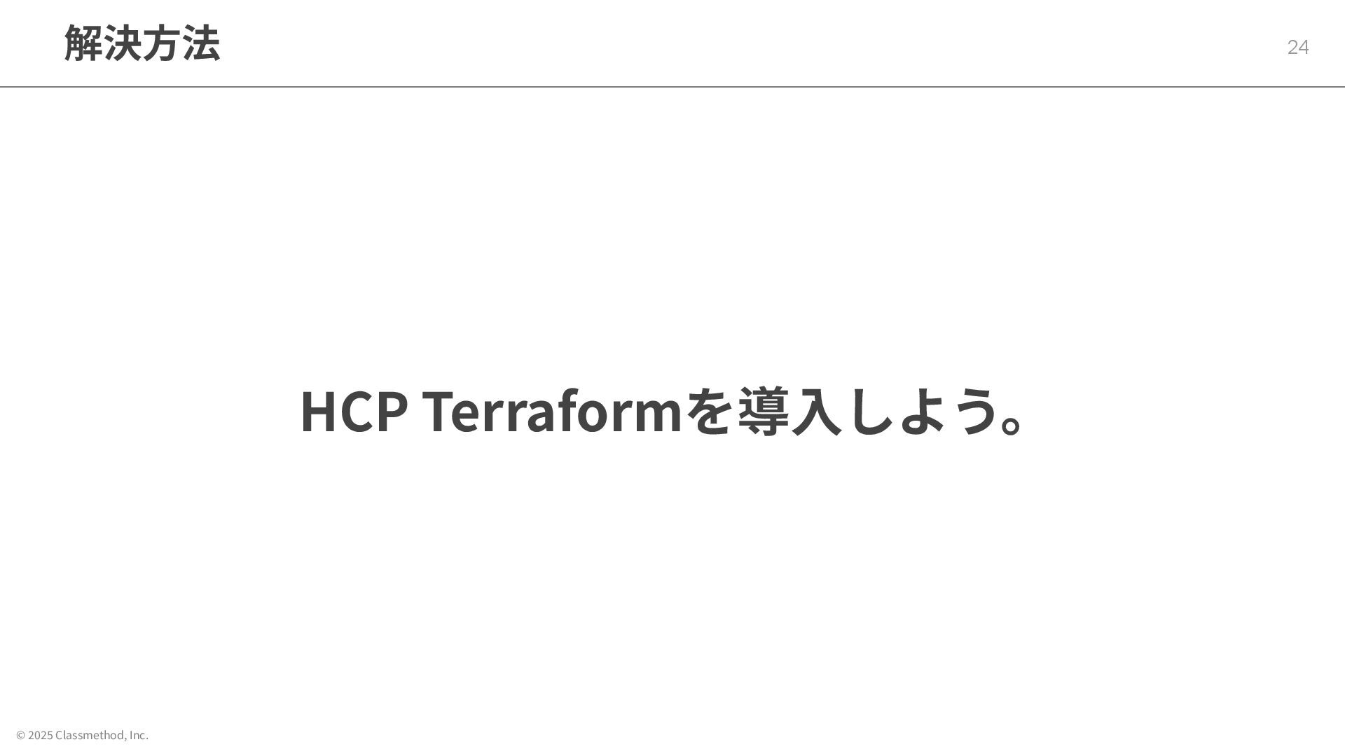 © 2025 Classmethod, Inc. 解決⽅法 24 HCP Terraformを導⼊しよう。