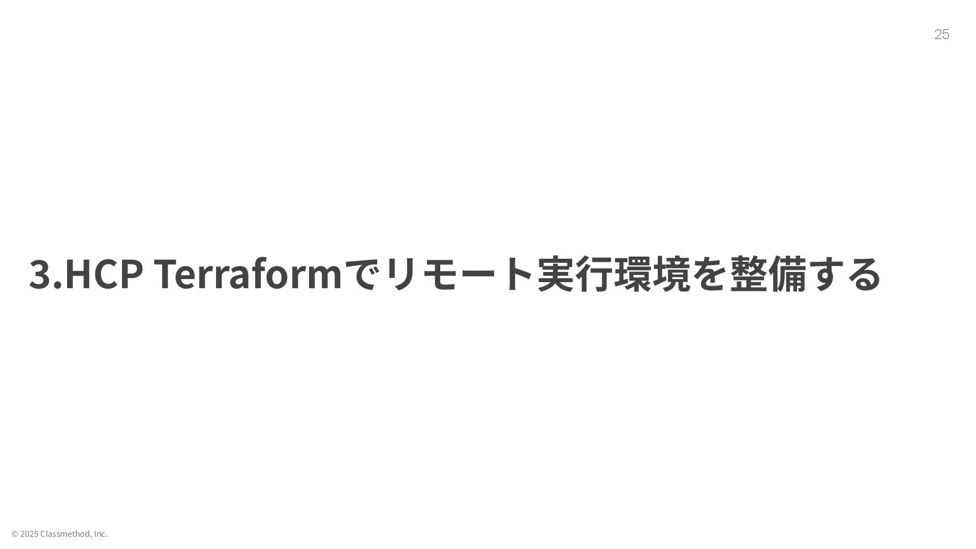© 2025 Classmethod, Inc. 25 3.HCP Terraformでリモート実⾏環境を整備する