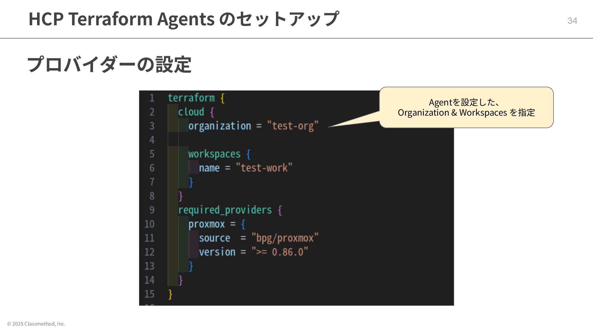 © 2025 Classmethod, Inc. HCP Terraform Agents のセットアップ 34 プロバイダーの設定
