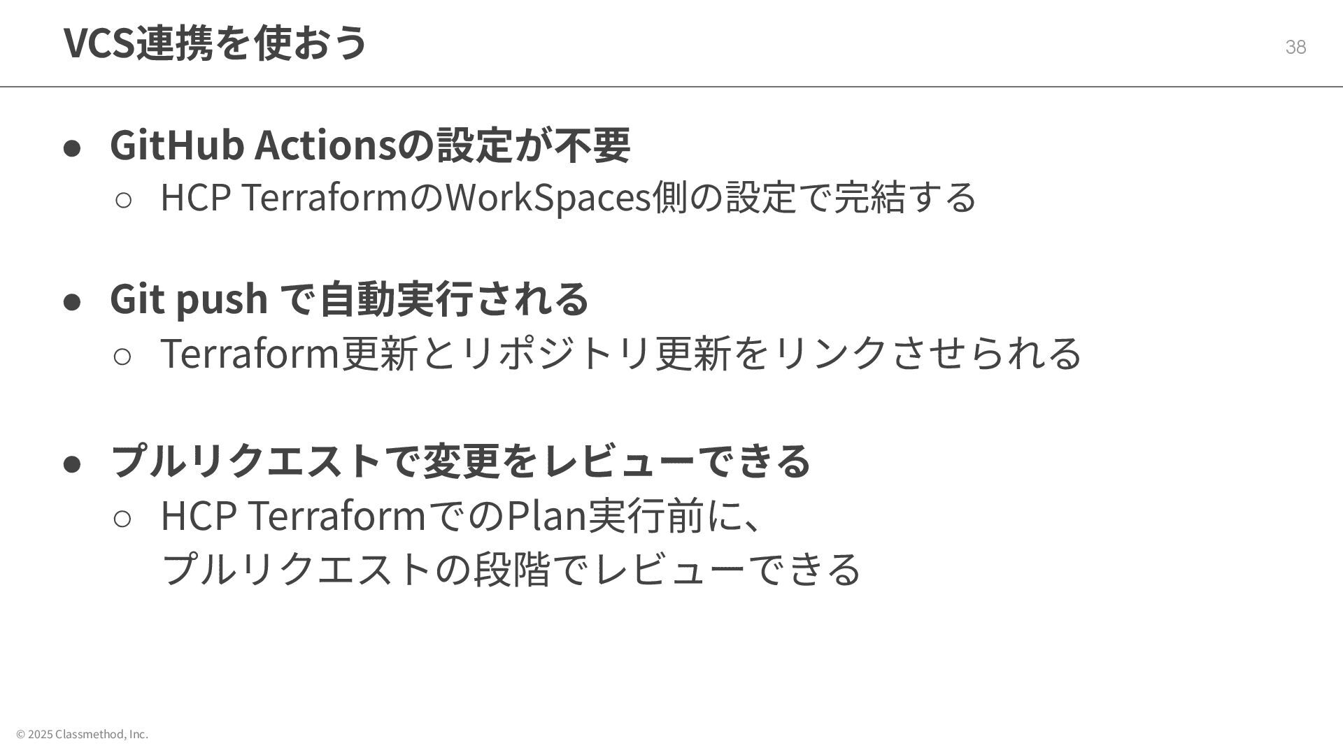 © 2025 Classmethod, Inc. 解決⽅法 16 HCP Terraform + VCS連携(GitHub)