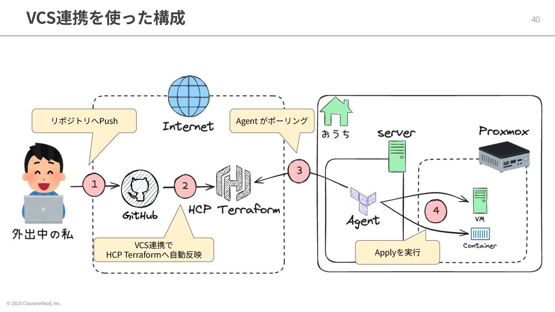 © 2025 Classmethod, Inc. VCS連携を使った構成 40 リポジトリへPush VCS連携で HCP Terraformへ⾃動反映
