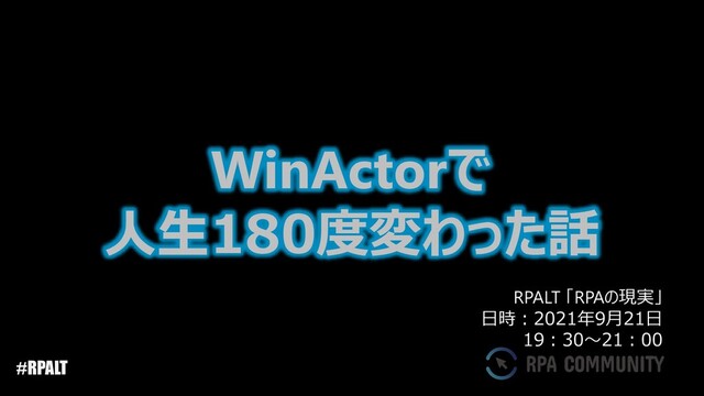 #RPALT WinActorで 人生180度変わった話 RPALT 「RPAの現実」 日時:2021年9月21日 19:30~21:00