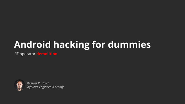 Imagine the world where you can get any application, look into its code (even if it is not open sourced) and modify any conditional operator in any way you like. Welcome, you are in the Android applications world! Let's discover how anyone can decompile your app and, for example, hack your 'if' operators. For the beginning, we will play a role of a script kiddie and try to hack some simple app. After this, we will pretend security-conscious Android developers and try to think how we can protect ourselves.