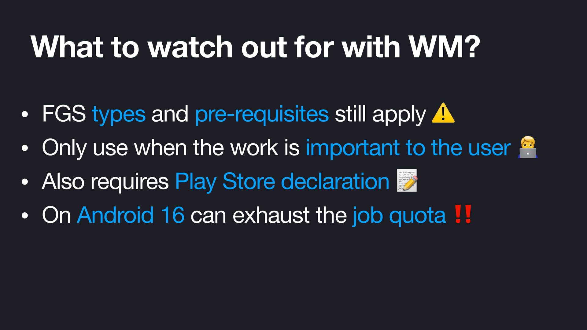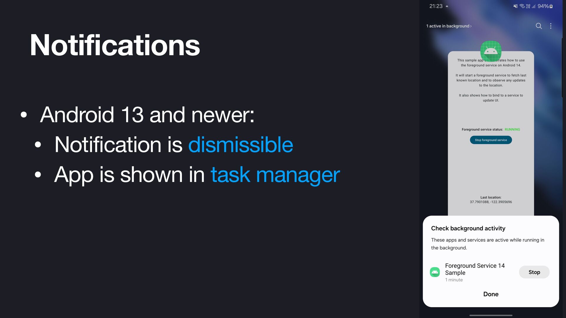 Foreground services are an essential component for executing long-running tasks on Android. However, as each new Android version introduces changes and limitations, implementing them correctly has become increasingly challenging. In this session, we will cover what a foreground service is, the changes introduced in recent Android versions, and how to update your apps to target the latest SDK versions. You will learn about different types of foreground services and common errors to avoid. We will also explore alternative approaches for handling background work. Additionally, we will take a practical look at how to correctly implement foreground services through a sample project. Walk away feeling confident you can leverage foreground services for long-running work in your apps.