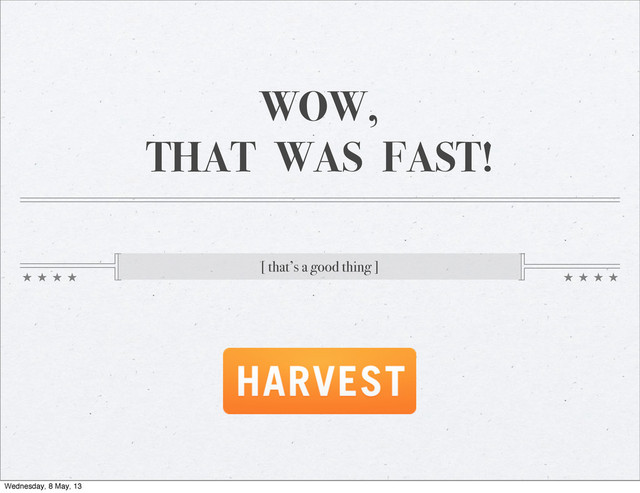 WOW, THAT WAS FAST! [ that’s a good thing ]