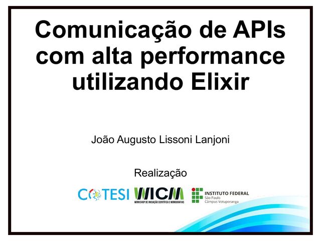 A Concurrency Comparision. 2018. Disponível em: https://learnitnow.medium.com/ruby-vs-elixir-vs-go-a-concur rency-comparision-d2330c1fa3a6. Acesso em: 07 maio 2023. LAYNE, Celeste. A is for Application: api basics. API Basics. 2020. Disponível em: https://medium.com/programming-for-design-practices/a-is-f or-application-api-basics-744661bb95a2. Acesso em: 07 maio 2023. Referências