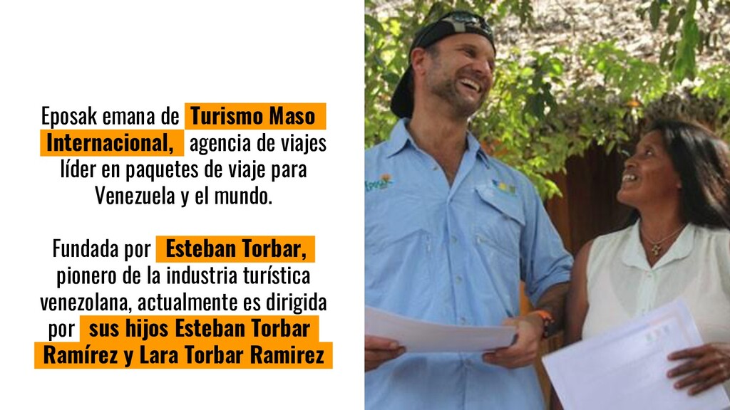 en paquetes de viaje para Venezuela y el mundo. Fundada por eEsteban Torbar,r pionero de la industria turística venezolana, actualmente es dirigida por ssus hijos Esteban Torbarr rRamírez y Lara Torbar Ramirezz