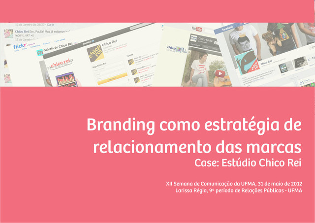 de vista centrais e o fim do direito exclusivo da edição das informações. In: OLIVEIRA, Ivone de Lourdes e MARCHIORI, Marlene (Org.). Série Pensamento e prática. Vol. 5. Redes Sociais, Comunicação, Organizações. 1. ed. São Caetano do Sul, SP: Difusão Editora, 2012. p. 147 a 166. TERRA, Carolina Frazon. Mídias Sociais... E agora? : O que você precisa saber para implementar um projeto de mídias sociais. São Caetano do Sul, SP: Difusão Editora; Rio de Janeiro: Editora SENAC Rio, 2011. OLIVEIRA, Ivone de Lourdes; PAULA, Maria Aparecida de. O que é comunicação estratégica nas organizações?. São Paulo: Paulus, 2007. ELLWOOD, Iain. O livro essencial das marcas: Tudo o que você precisa saber, em mais de 100 técnicas para aumentar o valor das marcas. São Paulo: Clio Editora, 2004. SHERRY Jr., John F. Significado da marca. In: TYBOUT, Alice M e Calkins, Tim (Org.). Branding: fundamentos, estratégias e alavancagem de marcas: implementação, modelagem e checklists: experiências de líderes de mercado. São Paulo: Altas, 2006. KAPFERER, Jean-Noel. As marcas, capital da empresa: criar e desenvolver marcas fortes. 3. ed. Porto Alegre: Bookman, 2003. PEREIRA, Fernanda Mendes Santiago; IASBECK, Luiz Carlos Assis. Gestão de comunicação da marca – branding: uma abordagem semiótica da marca nas organizações. In: Encontro Nacional da Compós, XX. Anais... Disponível em: http://www.compos.org.br/data/biblioteca_1634.doc . Acesso em: 13 de abril de 2012. BUENO, Wilson da Costa. Comunicação Empresarial: Teoria e Pesquisa. São Paulo: Manole, 2003.