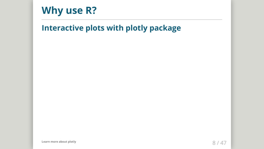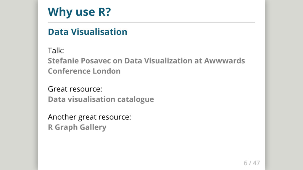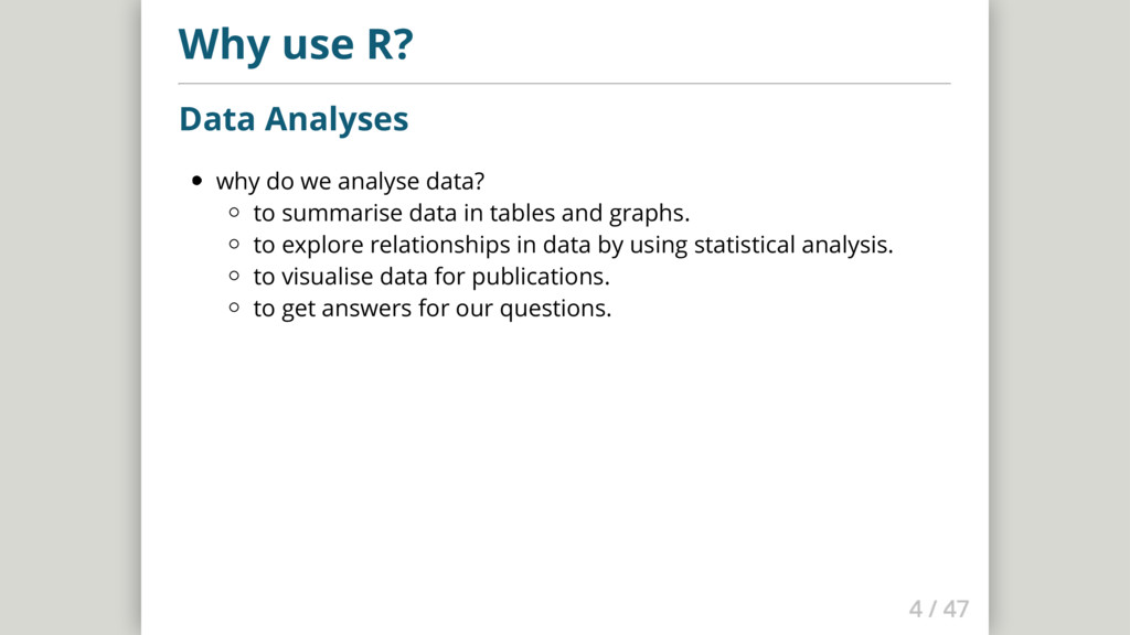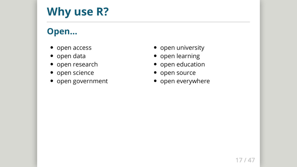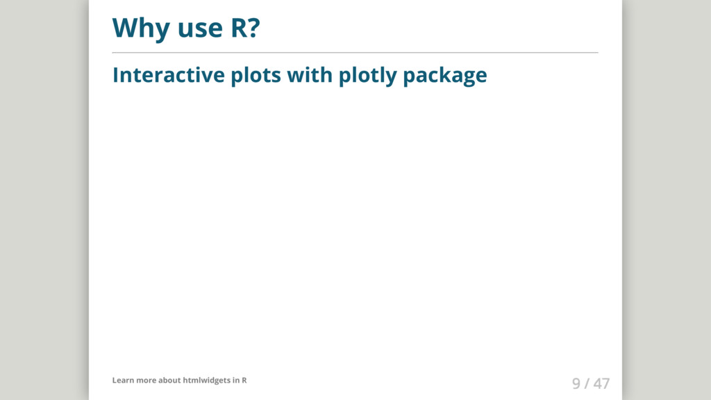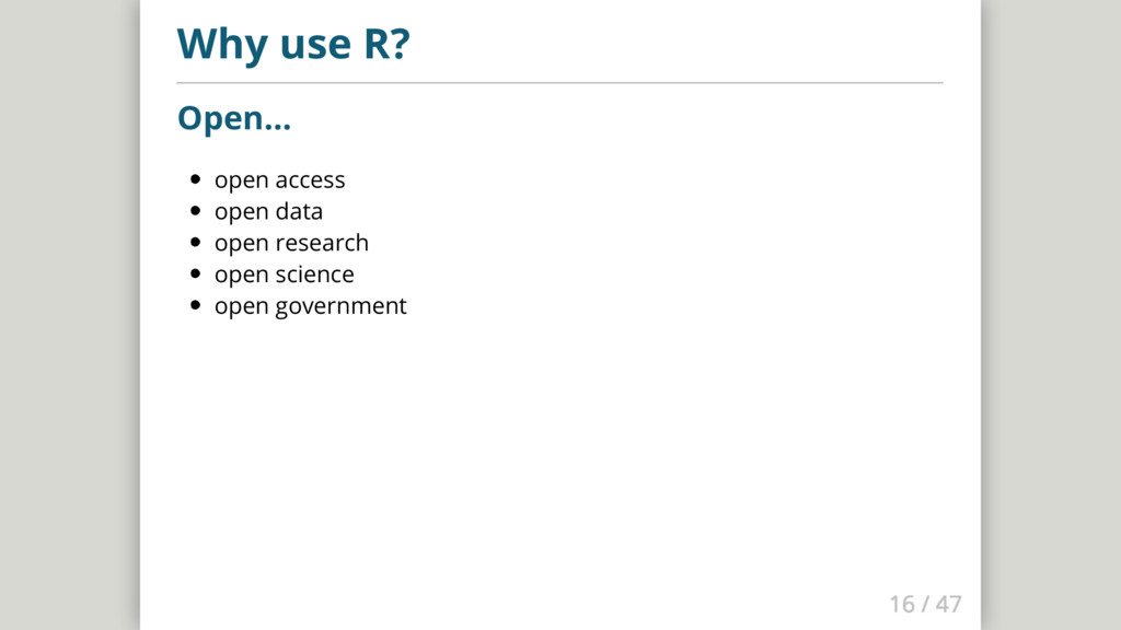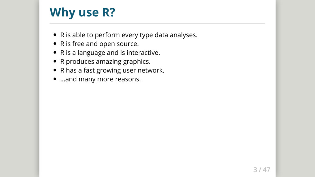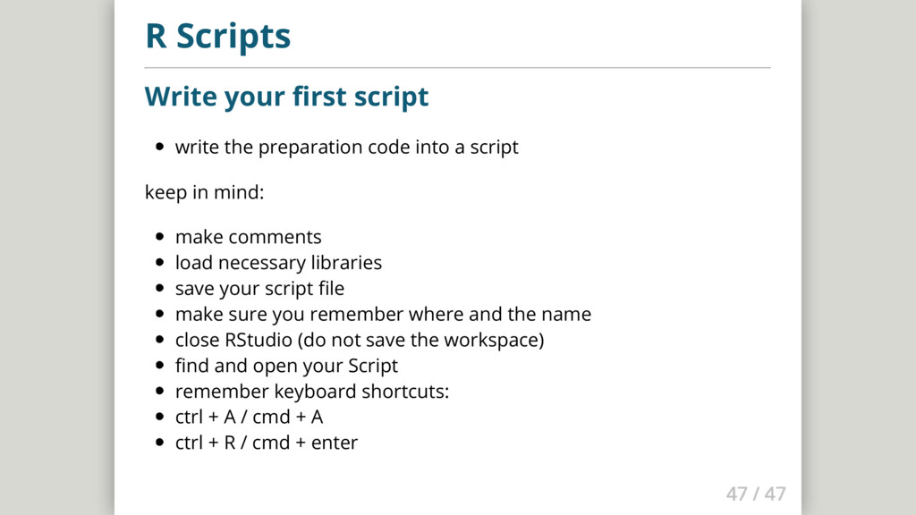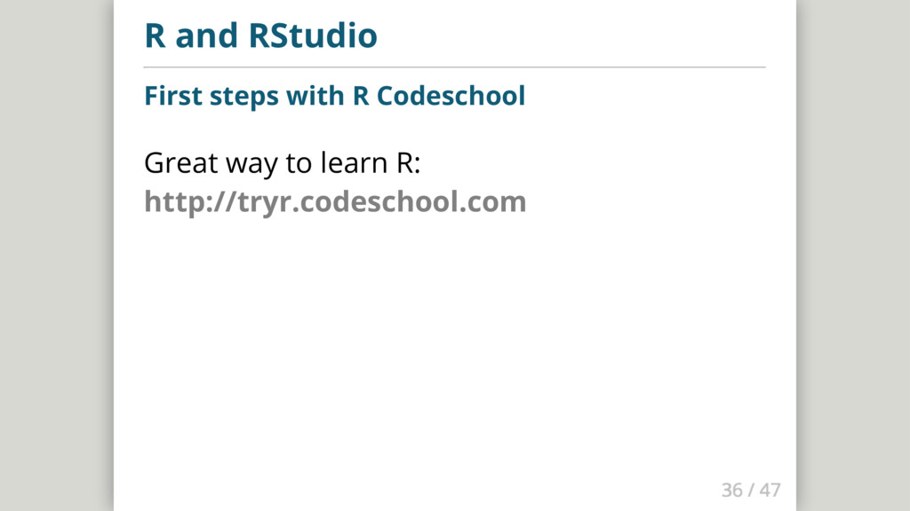 the Console library(gapminder) str(gapminder) ## Classes 'tbl_df', 'tbl' and 'data.frame': 1704 obs. of 6 variables ## $ country : Factor w/ 142 levels "Afghanistan",..: 1 1 1 1 1 1 1 1 1 ## $ continent: Factor w/ 5 levels "Africa","Americas",..: 3 3 3 3 3 3 3 ## $ year : int 1952 1957 1962 1967 1972 1977 1982 1987 1992 1997 . ## $ lifeExp : num 28.8 30.3 32 34 36.1 ... ## $ pop : int 8425333 9240934 10267083 11537966 13079460 14880372 ## $ gdpPercap: num 779 821 853 836 740 ...